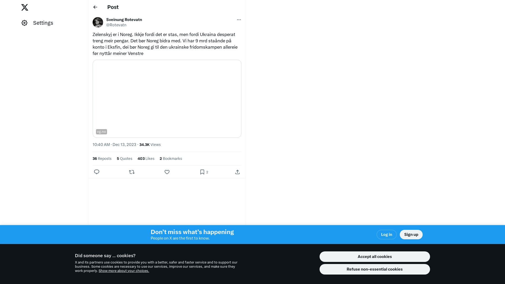 Zelenskyj er i Noreg. Ikkje fordi det er stas, men fordi Ukraina desperat treng meir pengar. Det bør Noreg bidra med. Vi har 9 mrd staånde på konto i Eksfin, dei bør Noreg gi til den ukrainske fridomskampen allereie før nyttår meiner Venstre https://t.co/nbpgapoKBw