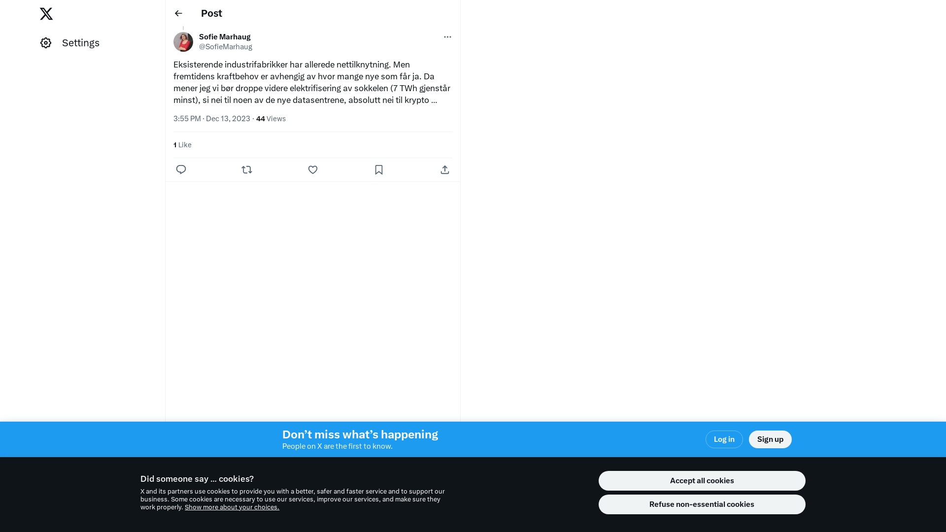 @olehagen @feskehau Eksisterende industrifabrikker har allerede nettilknytning. Men fremtidens kraftbehov er avhengig av hvor mange nye som får ja. Da mener jeg vi bør droppe videre elektrifisering av sokkelen (7 TWh gjenstår minst), si nei til noen av de nye datasentrene, absolutt nei til krypto …