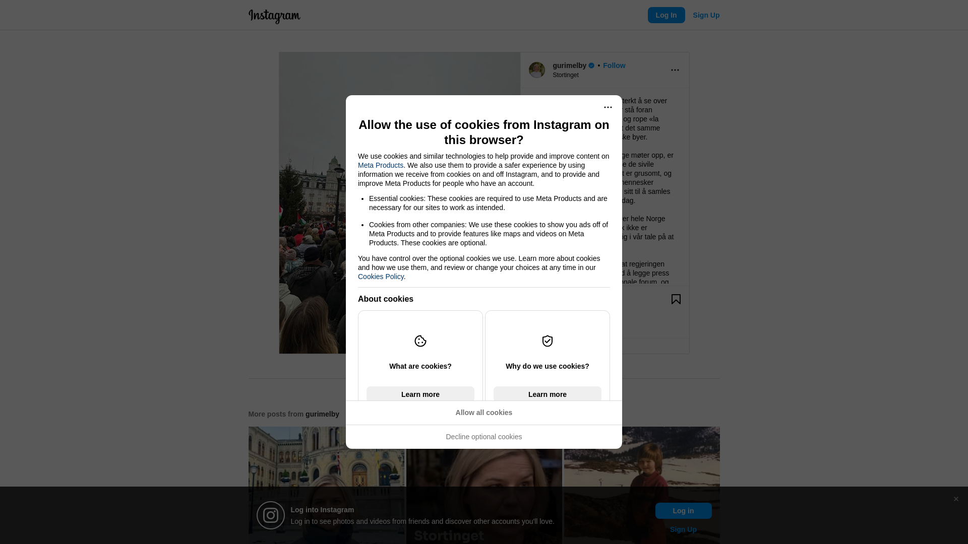 Det er sterkt å se over 13.000 demonstranter stå foran Stortinget i Oslo i dag og rope «la barna leve», og vite at det samme skjedde i over 20 norske byer.\n\nGrunnen til at så mange møter opp, er at det er uholdbart å se de sivile lidelsene fortsette. Det er grusomt, og det er viktig at enkeltmennesker bruker engasjementet sitt til å samles og ytre seg slik som i dag.\n\nDemonstrasjonene over hele Norge viser at det norske folk ikke er likegyldige. Vi er tydelig i vår tale på at nok er nok.\n\nJeg ber instendig om at regjeringen fortsetter arbeidet med å legge press på partene i internasjonale forum, og at Norge stiller opp med det vi kan. Vi trenger en umiddelbar våpenhvile nå, og vi trenger en mer permanent løsning på denne konflikten. Drapene på barn og sivile i Gaza må stoppes.\n\nBilder fått fra @marit.vea - sentralstyremedlem i @venstre.no - som var på demonstrasjonen i Oslo sammen med mange andre fra @oslovenstre 💚