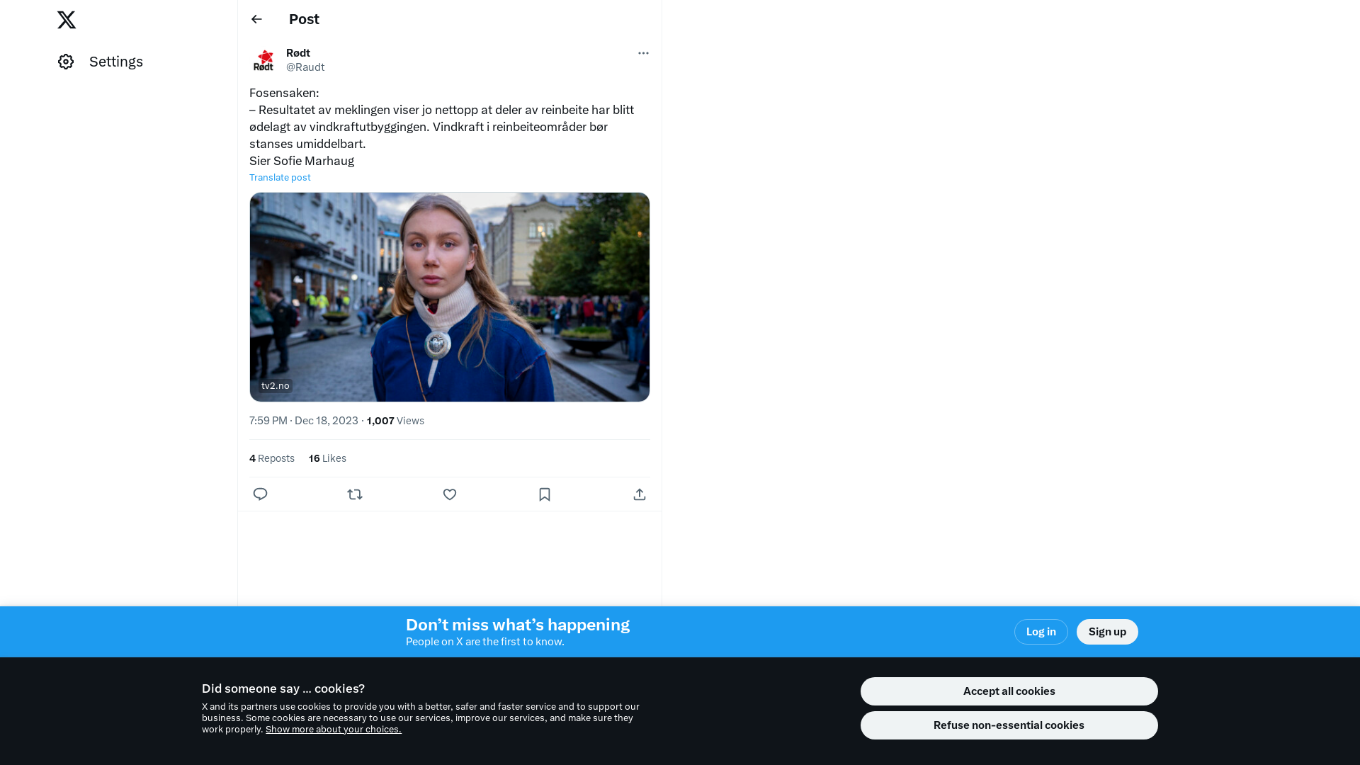 Fosensaken:\n– Resultatet av meklingen viser jo nettopp at deler av reinbeite har blitt ødelagt av vindkraftutbyggingen. Vindkraft i reinbeiteområder bør stanses umiddelbart.\nSier Sofie Marhaug\n\nhttps://t.co/ULAbyuVTNM