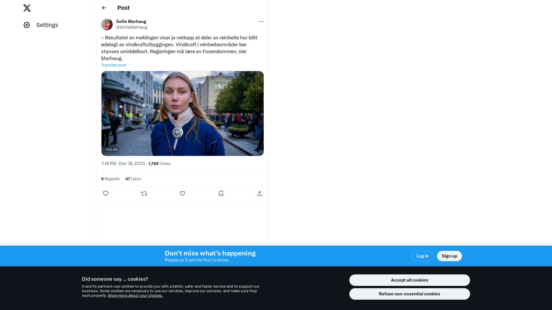 – Resultatet av meklingen viser jo nettopp at deler av reinbeite har blitt ødelagt av vindkraftutbyggingen. Vindkraft i reinbeiteområder bør stanses umiddelbart. Regjeringen må lære av Fosendommen, sier Marhaug.\n\nhttps://t.co/DhVv4vT5Jh