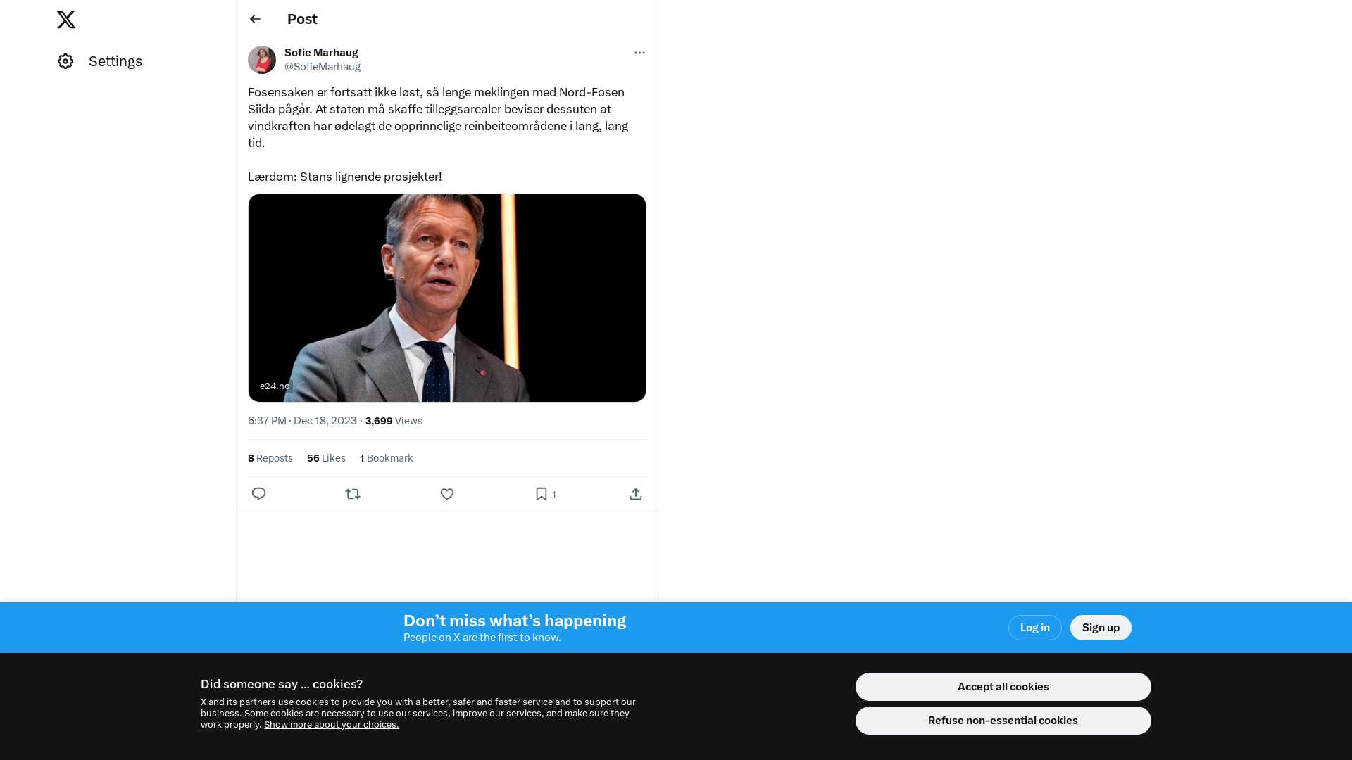 Fosensaken er fortsatt ikke løst, så lenge meklingen med Nord-Fosen Siida pågår. At staten må skaffe tilleggsarealer beviser dessuten at vindkraften har ødelagt de opprinnelige reinbeiteområdene i lang, lang tid. \n\nLærdom: Stans lignende prosjekter!\n\nhttps://t.co/1rMYMmu6eS