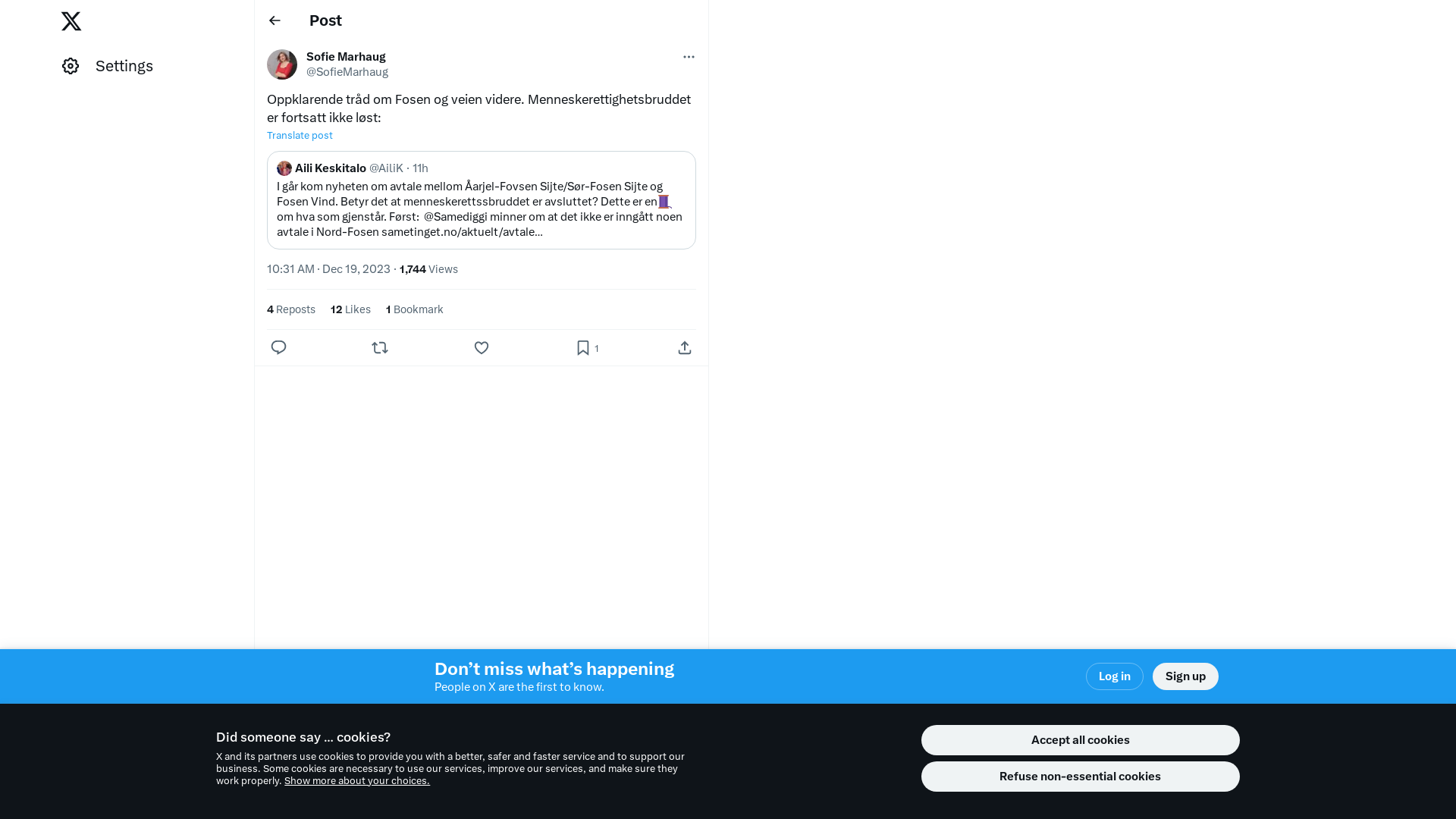 Sør-Fosen Sijte, Fosen Vind DA og staten har i dag gjort kjent at de har inngått avtale om en økonomisk erstatning og at staten tilgjengeliggjør tilleggsareal for vinterbeite. Sør-Fosen Sijte har vetorett angående søknad om forlengelse av konsesjonsperioden for vindturbinene på Storheia. Forhandlingene mellom Nord-Fosen Siida, Roan Vind DA og staten er enda ikke avsluttet.