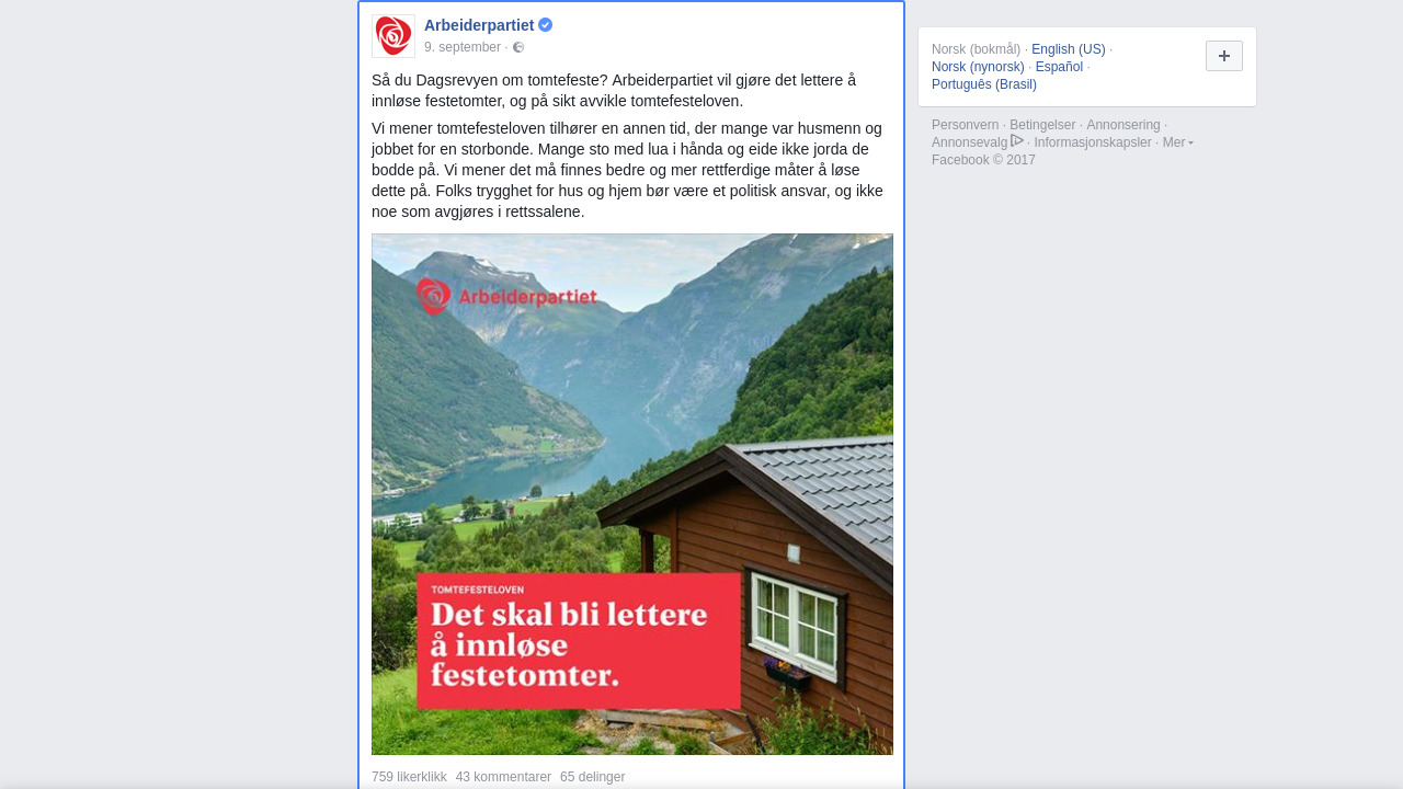 Så du Dagsrevyen om tomtefeste? Arbeiderpartiet vil gjøre det lettere å innløse festetomter, og på sikt avvikle tomtefesteloven.