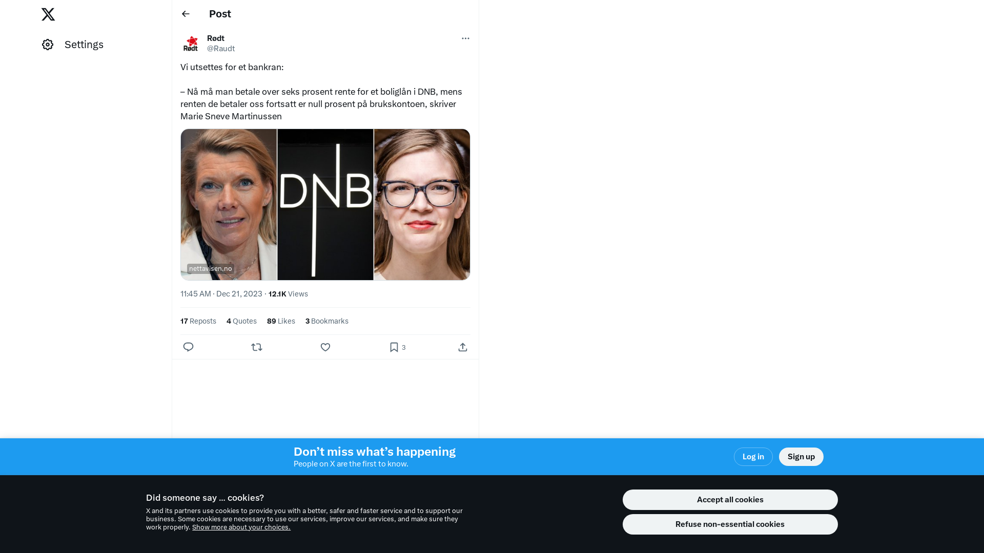 Vi utsettes for et bankran:\n\n– Nå må man betale over seks prosent rente for et boliglån i DNB, mens renten de betaler oss fortsatt er null prosent på brukskontoen, skriver Marie Sneve Martinussen\n\nhttps://t.co/3quxaID2Qi