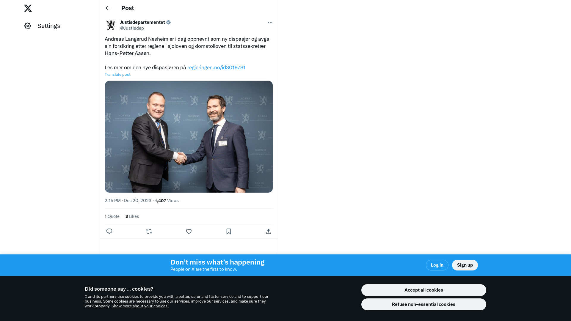 Andreas Langerud Nesheim er i dag oppnevnt som ny dispasjør og avga sin forsikring etter reglene i sjøloven og domstolloven til statssekretær Hans-Petter Aasen.\n\nLes mer om den nye dispasjøren på https://t.co/OC1bTC110I https://t.co/TAkeDdbvk9