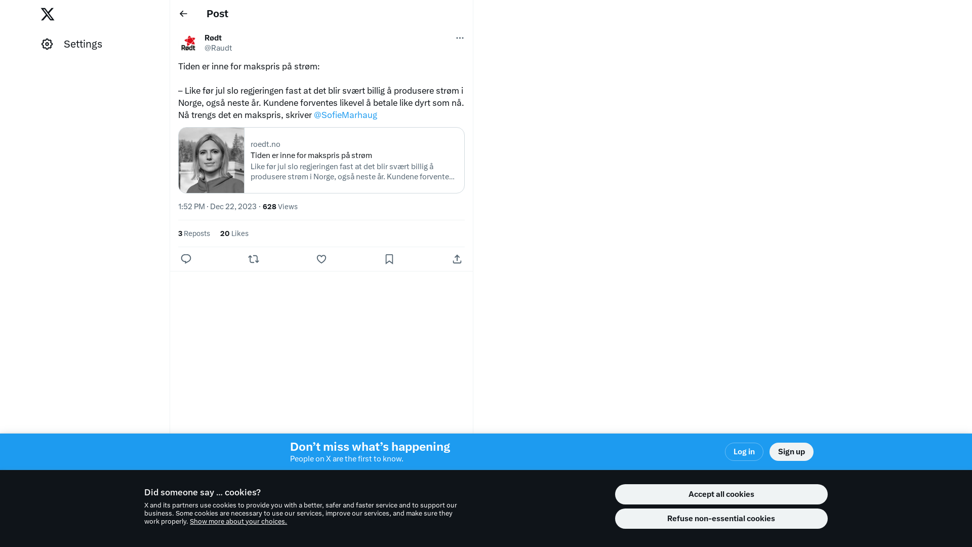 Tiden er inne for makspris på strøm:\n\n– Like før jul slo regjeringen fast at det blir svært billig å produsere strøm i Norge, også neste år. Kundene forventes likevel å betale like dyrt som nå. Nå trengs det en makspris, skriver @SofieMarhaug \n\nhttps://t.co/CfQuskhvfv