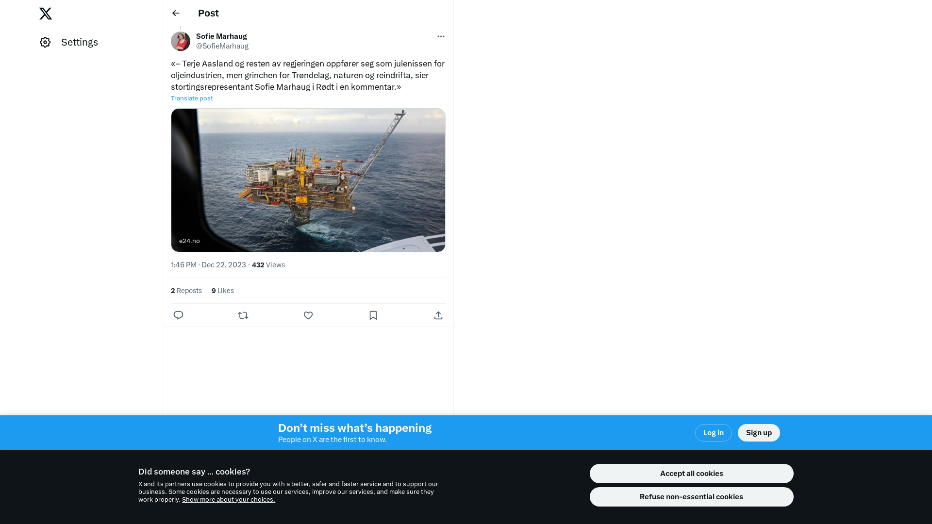 «– Terje Aasland og resten av regjeringen oppfører seg som julenissen for oljeindustrien, men grinchen for Trøndelag, naturen og reindrifta, sier stortingsrepresentant Sofie Marhaug i Rødt i en kommentar.»\n\nhttps://t.co/MzP5fOP7mK
