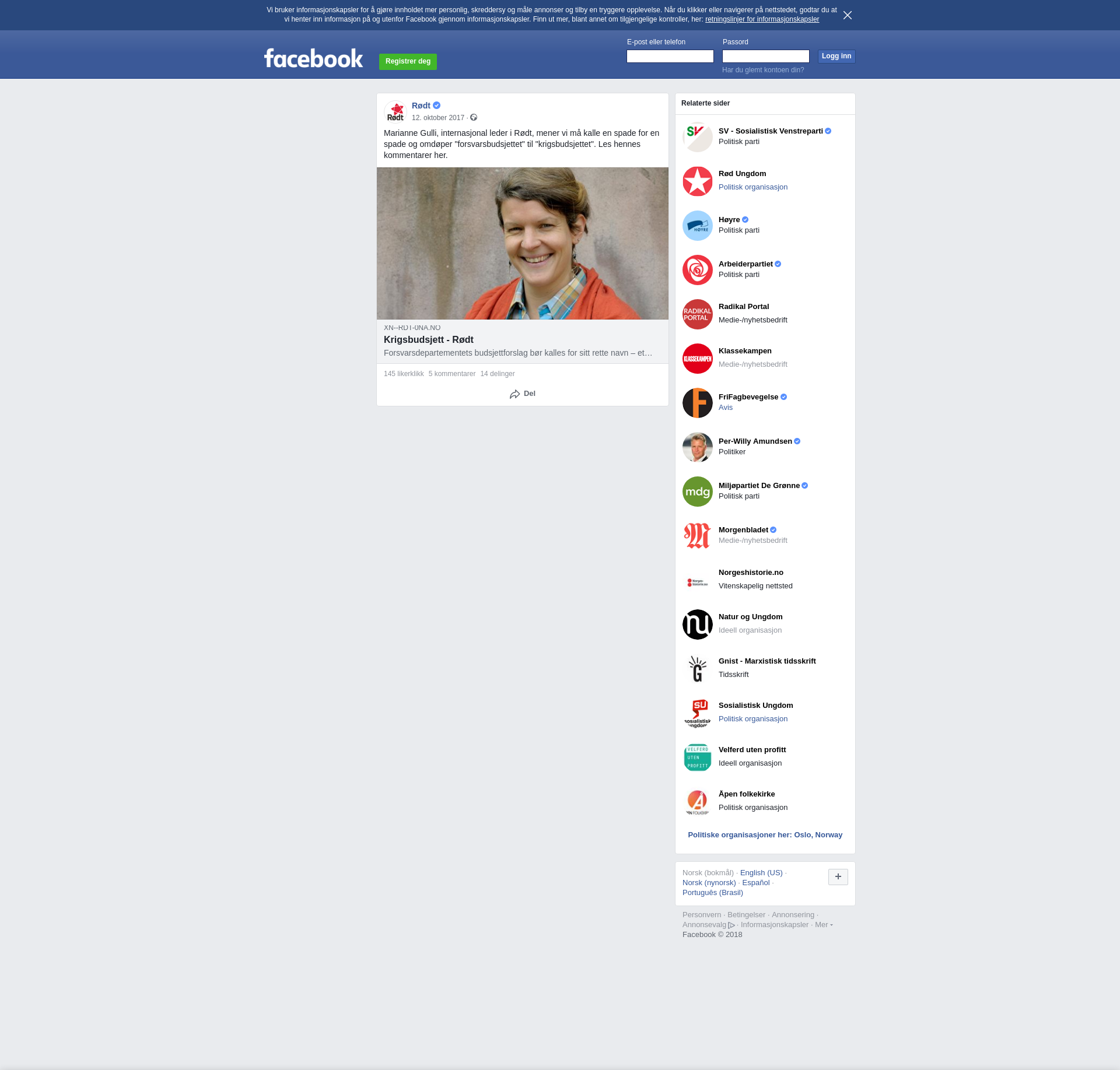 Forsvarsdepartementets budsjettforslag bør kalles for sitt rette navn – et krigsbudsjett, sier internasjonalt ansvarlig i Rødt, Marianne Gulli, om forsvarsdepartementets budsjettforslag som ble lansert i dag