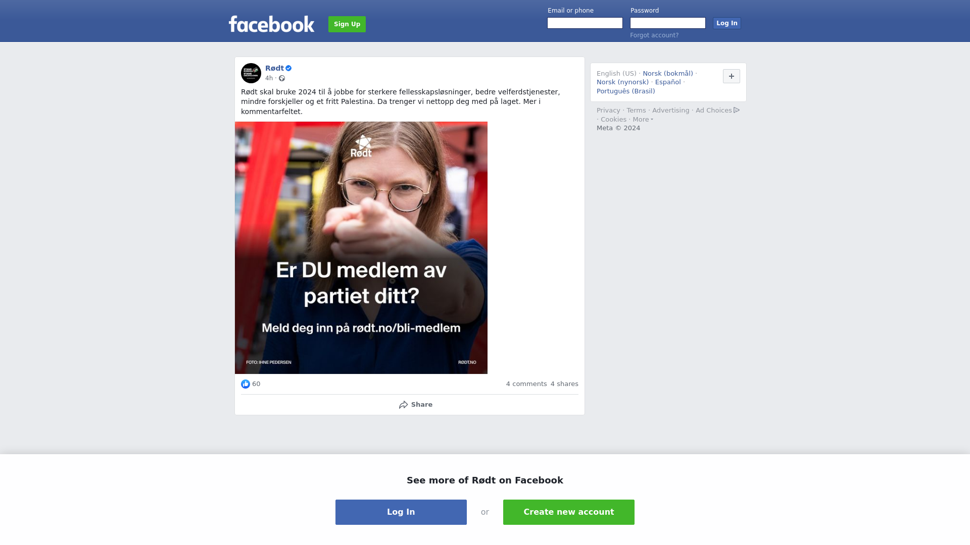 Rødt skal bruke 2024 til å jobbe for sterkere fellesskapsløsninger, bedre velferdstjenester, mindre forskjeller og et fritt Palestina. Da trenger vi nettopp deg med på laget. Mer i kommentarfeltet.