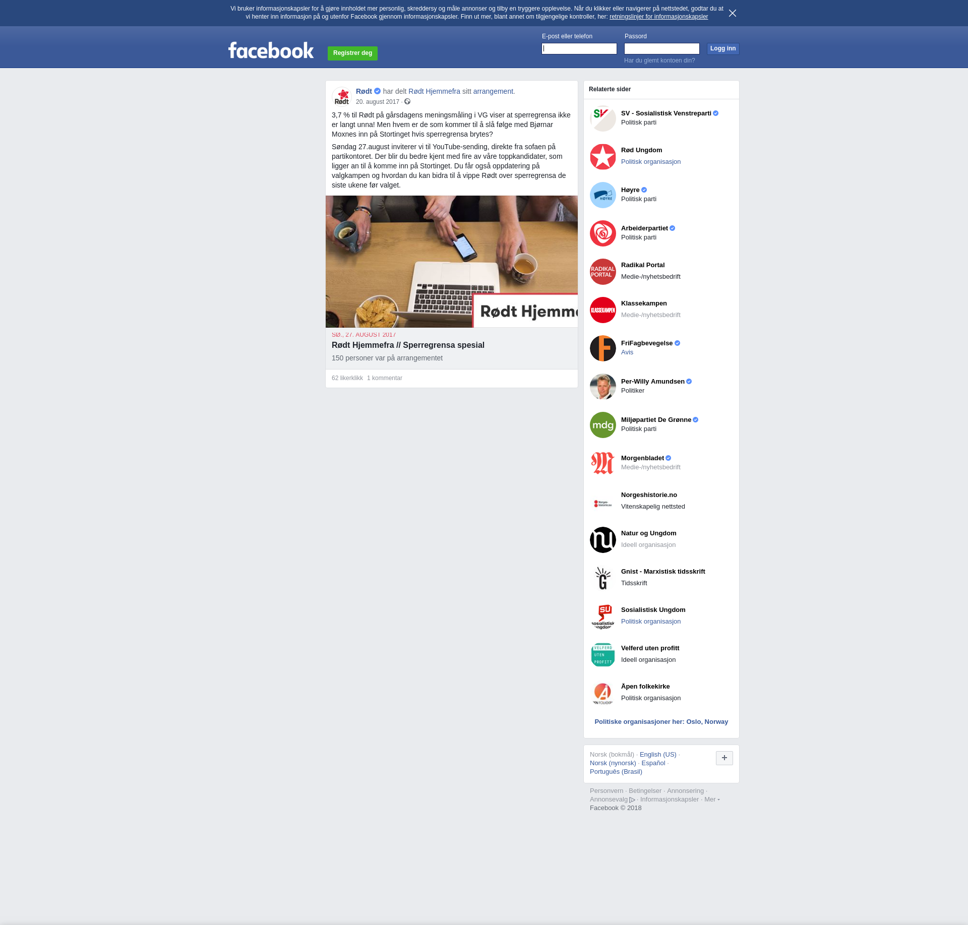 Søndag 27.august inviterer vi til YouTube-sending, direkte fra sofaen på partikontoret. Der blir du bedre kjent med fire av våre toppkandidater, som ligger an til å komme inn på Stortinget. Du får også oppdatering på valgkampen og hvordan du kan bidra til å vippe Rødt over sperregrensa de siste ukene før valget.