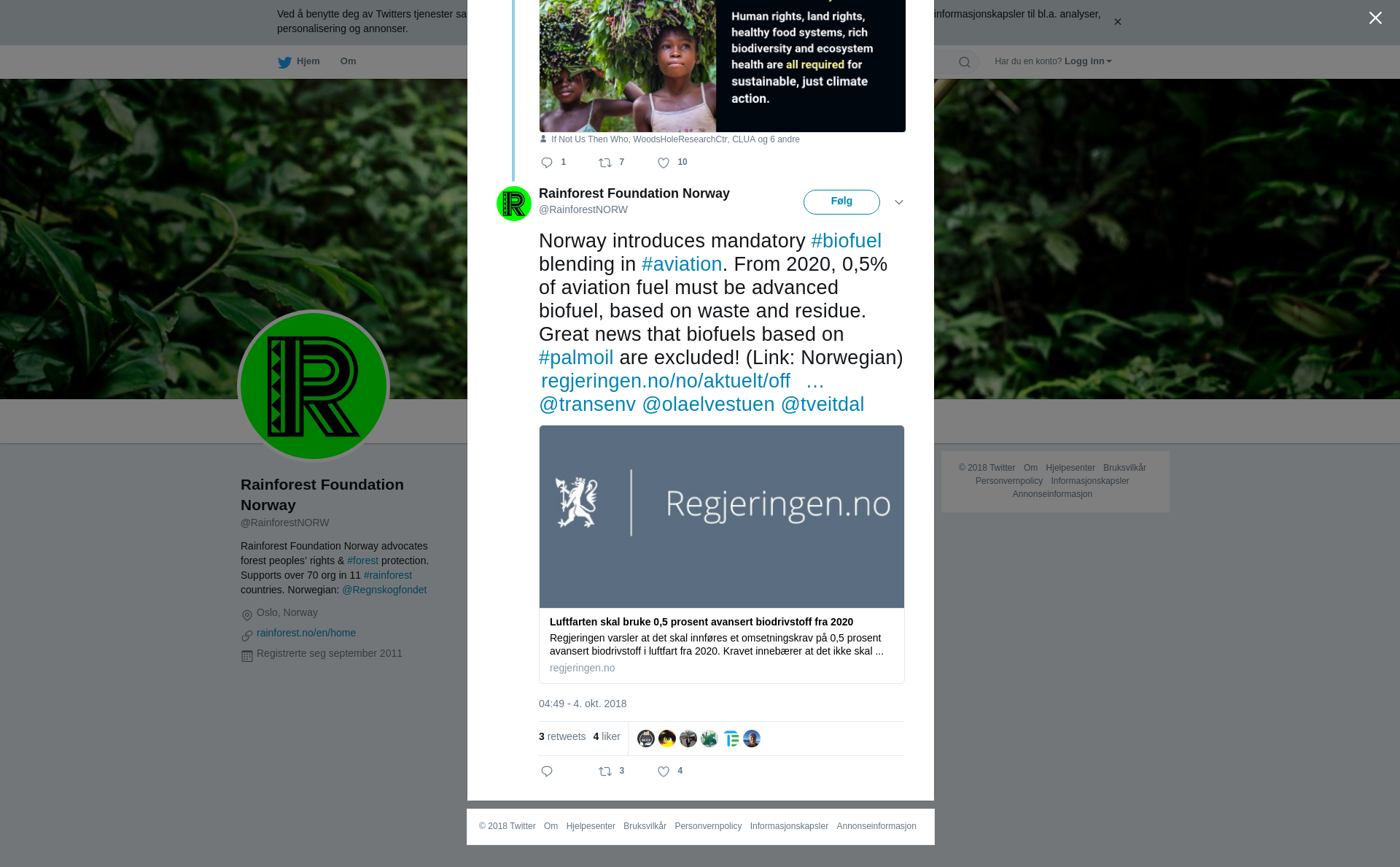 RT @RainforestNORW: Norway introduces mandatory #biofuel blending in #aviation. From 2020, 0,5% of aviation fuel must be advanced biofuel, based on waste and residue. Great news that biofuels based on #palmoil are excluded! (Link: Norwegian)