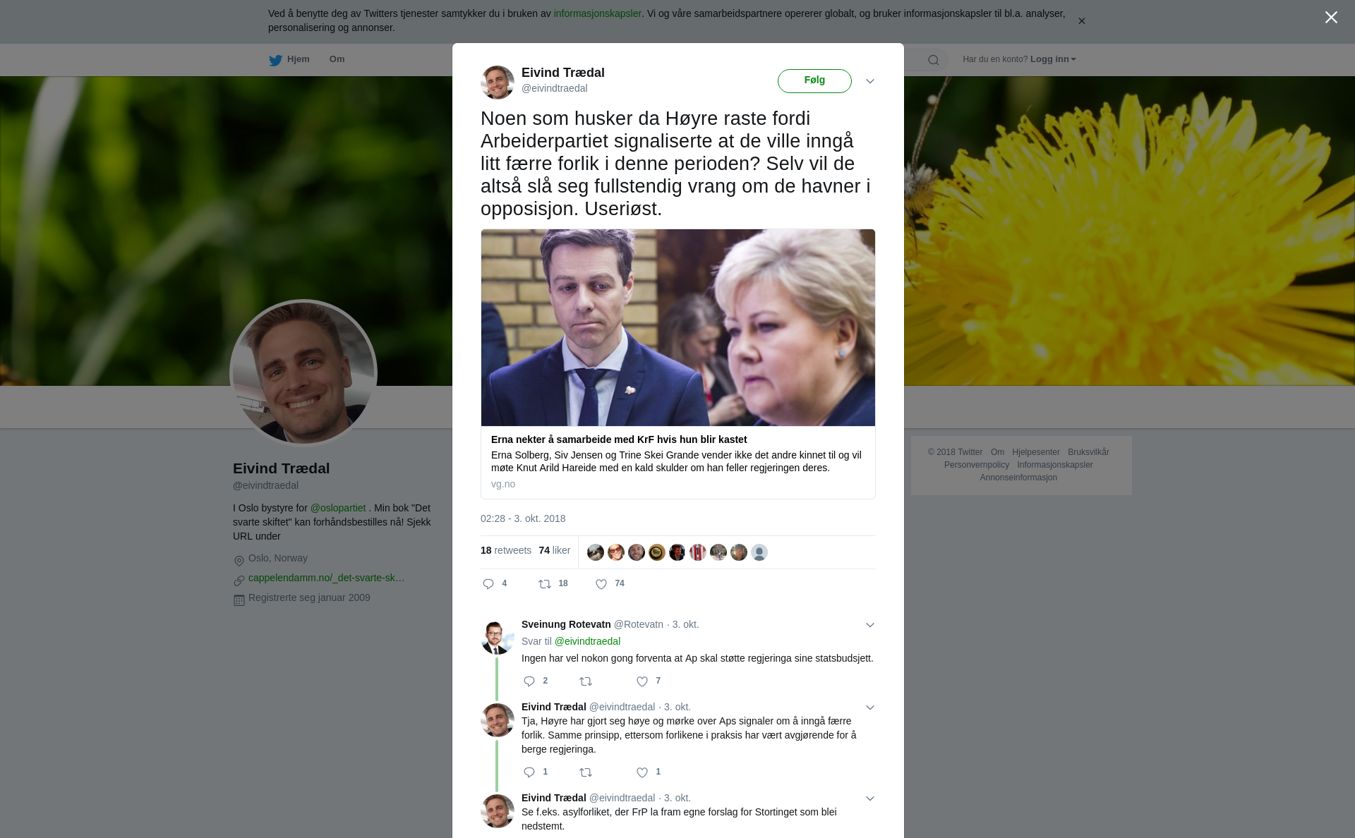 RT @eivindtraedal: Noen som husker da Høyre raste fordi Arbeiderpartiet signaliserte at de ville inngå litt færre forlik i denne perioden? Selv vil de altså slå seg fullstendig vrang om de havner i opposisjon. Useriøst. https://t.co/SS4canNSWa
