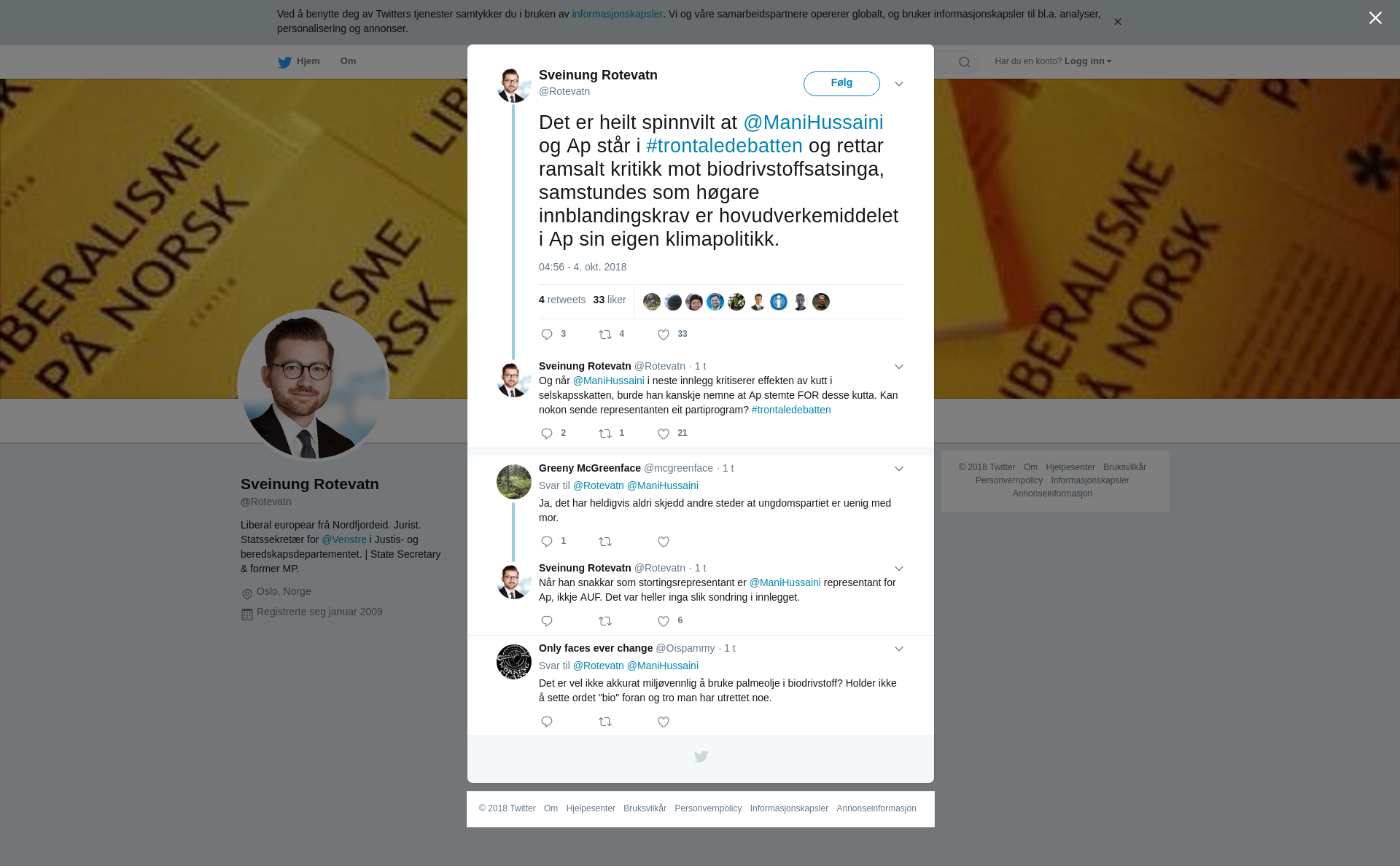 RT @Rotevatn: Det er heilt spinnvilt at @ManiHussaini og Ap står i #trontaledebatten og rettar ramsalt kritikk mot biodrivstoffsatsinga, samstundes som høgare innblandingskrav er hovudverkemiddelet i Ap sin eigen klimapolitikk.