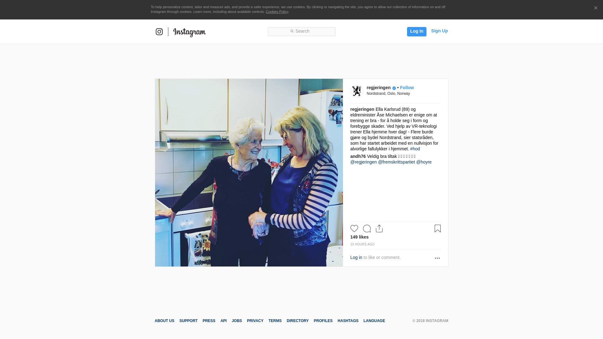 Ella Karlsrud (89) og eldreminister Åse Michaelsen er enige om at trening er bra - for å holde seg i form og forebygge skader. Ved hjelp av VR-teknologi trener Ella hjemme hver dag! - Flere burde gjøre og bydel Nordstrand, sier statsråden, som har startet arbeidet med en nullvisjon for alvorlige fallulykker i hjemmet. #hod
