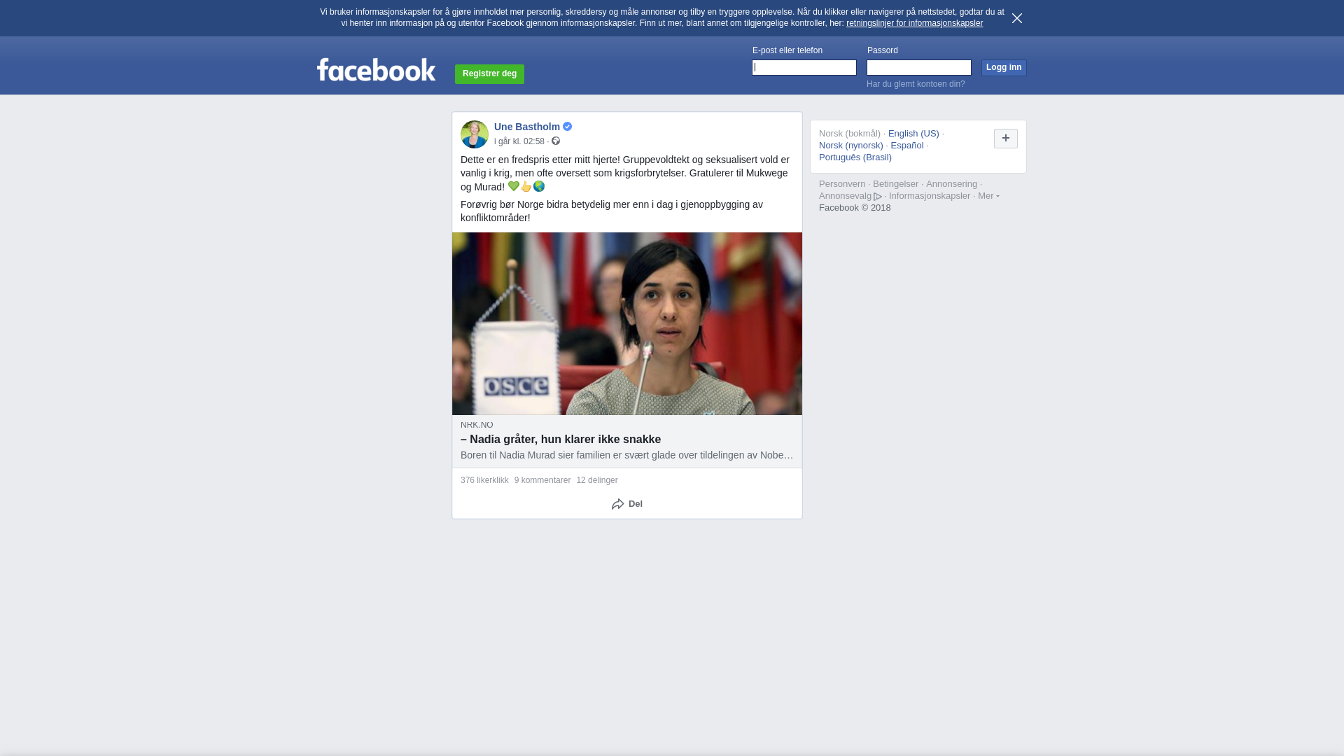 Boren til Nadia Murad sier familien er svært glade over tildelingen av Nobels fredspris til Nadia Murad. – Da jeg snakket med henne på telefonen, bare gråt hun. Hun klarer ikke snakke, sier Sauds Murad til NRK.