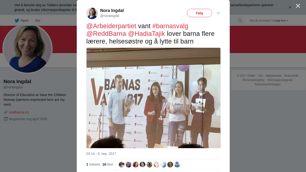 RT @noraingdal: @Arbeiderpartiet vant #barnasvalg @ReddBarna @HadiaTajik lover barna flere lærere, helsesøstre og å lytte til barn https://t.co/2hsqCCyWrx