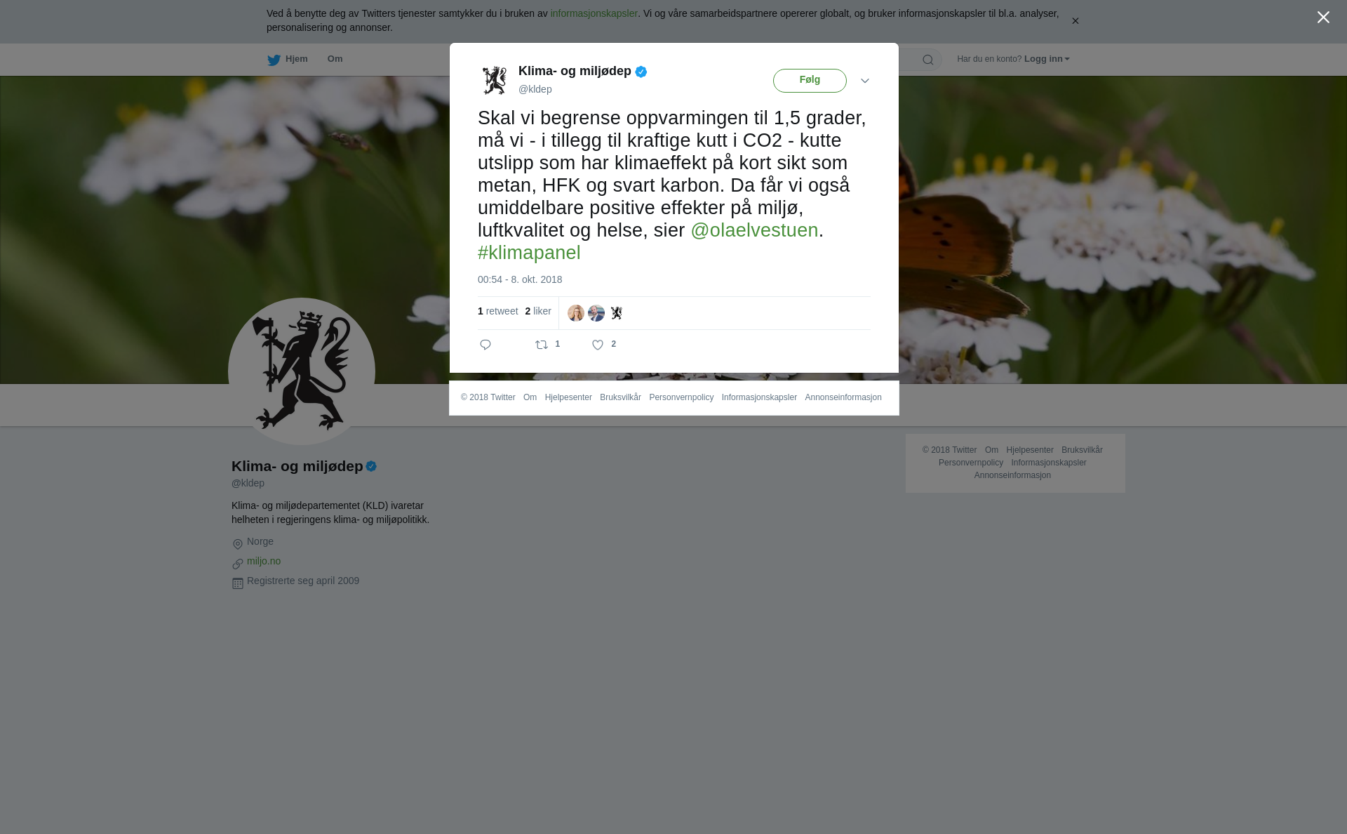 Skal vi begrense oppvarmingen til 1,5 grader, må vi - i tillegg til kraftige kutt i CO2 - kutte utslipp som har klimaeffekt på kort sikt som metan, HFK og svart karbon. Da får vi også umiddelbare positive effekter på miljø, luftkvalitet og helse, sier @olaelvestuen. #klimapanel
