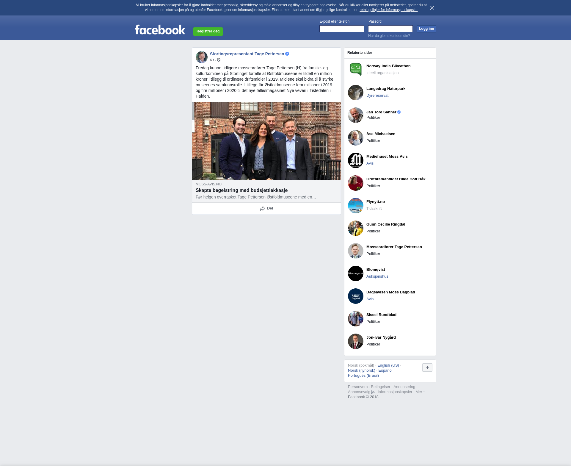 Fredag kunne tidligere mosseordfører Tage Pettersen (H) fra familie- og kulturkomiteen på Stortinget fortelle at Østfoldmuseene er tildelt en million kroner i tillegg til ordinære driftsmidler i 2019. Midlene skal bidra til å styrke museenes samfunnsrolle. I tillegg får Østfoldmuseene fem millioner i 2019 og fire millioner i 2020 til det nye fellesmagasinet Nye veveri i Tistedalen i Halden.