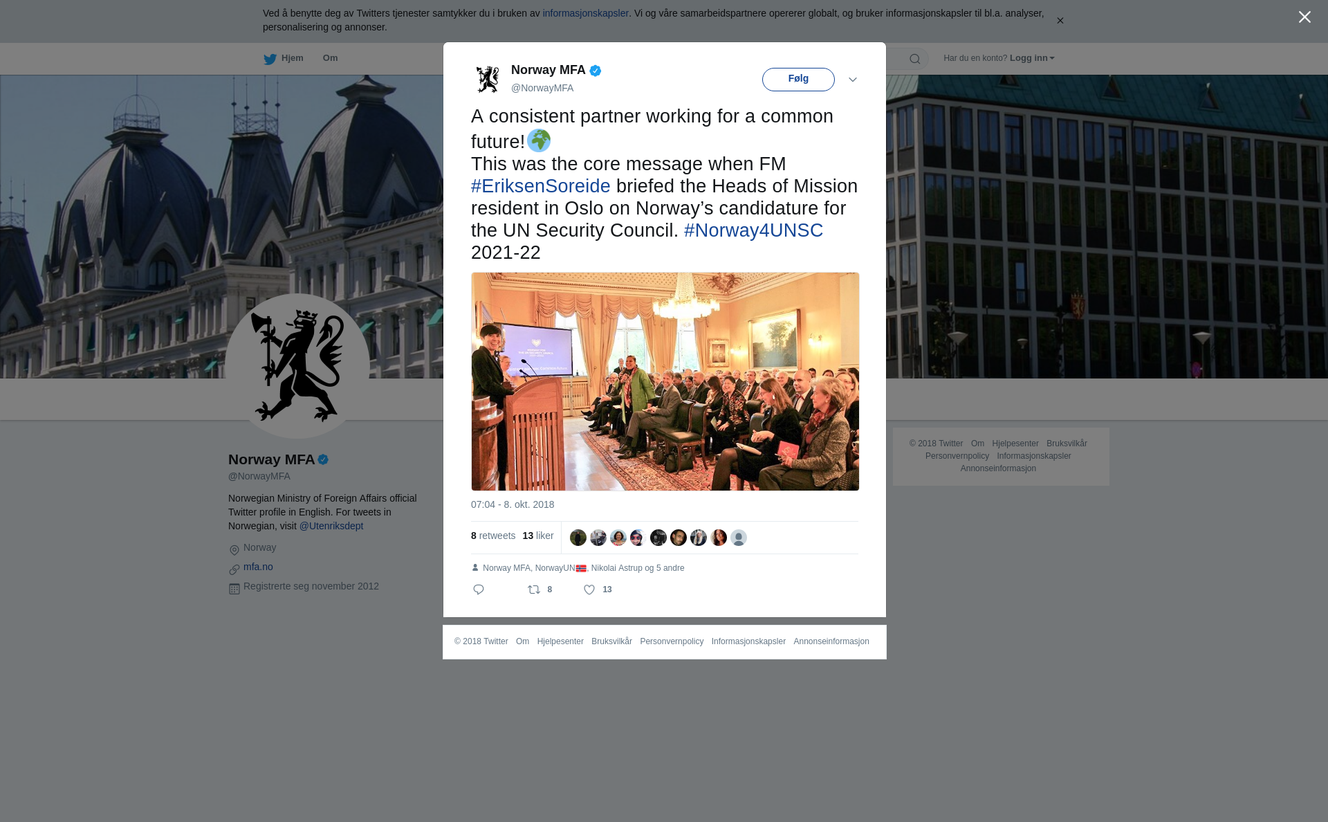 This was the core message when FM #EriksenSoreide briefed the Heads of Mission resident in Oslo on Norway’s candidature for the UN Security Council. #Norway4UNSC 2021-22 https://t.co/Uay2iar4Fx