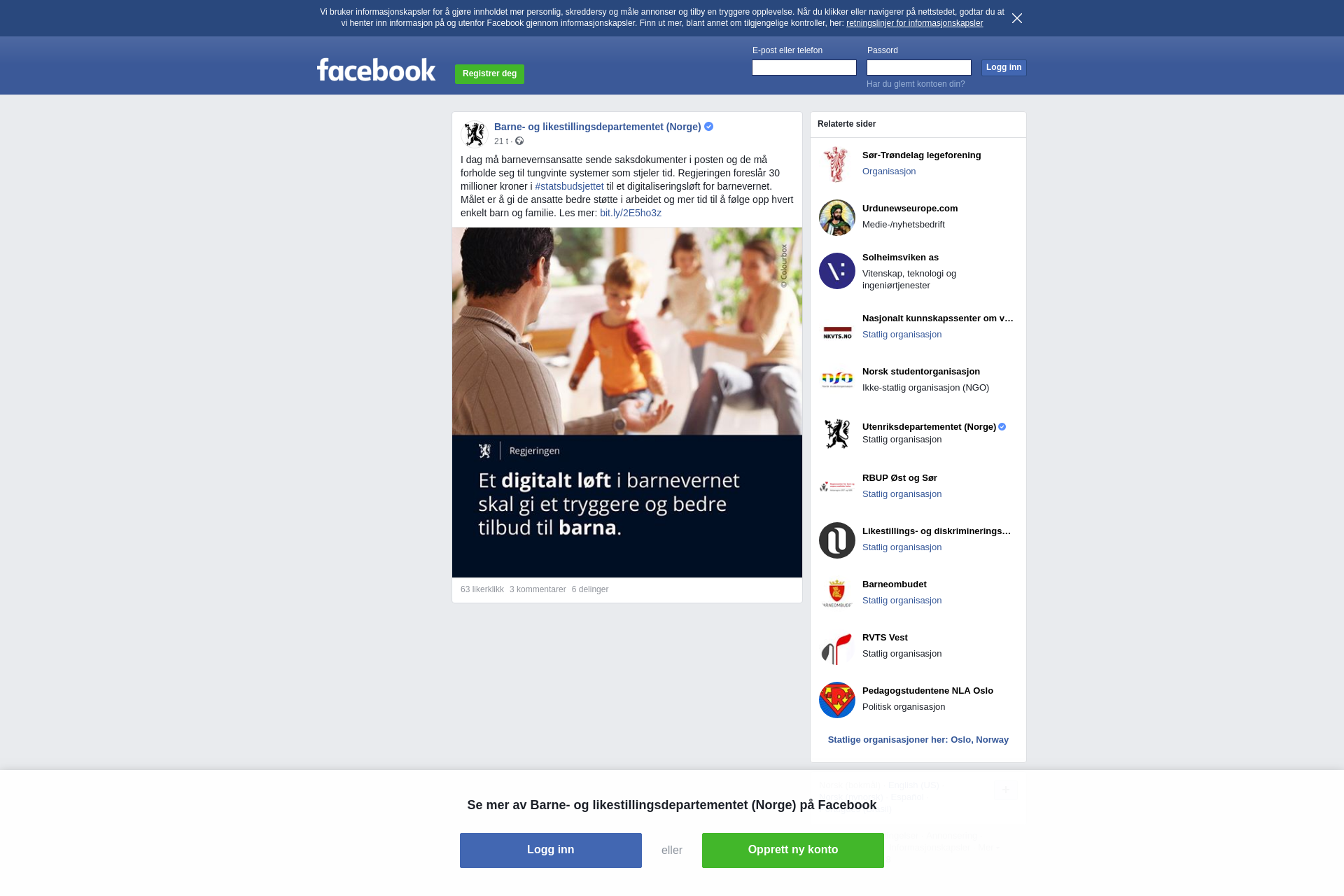 I dag må barnevernsansatte sende saksdokumenter i posten og de må forholde seg til tungvinte systemer som stjeler tid. Regjeringen foreslår 30 millioner kroner i #statsbudsjettet til et digitaliseringsløft for barnevernet. Målet er å gi de ansatte bedre støtte i arbeidet og mer tid til å følge opp hvert enkelt barn og familie. Les mer: bit.ly/2E5ho3z