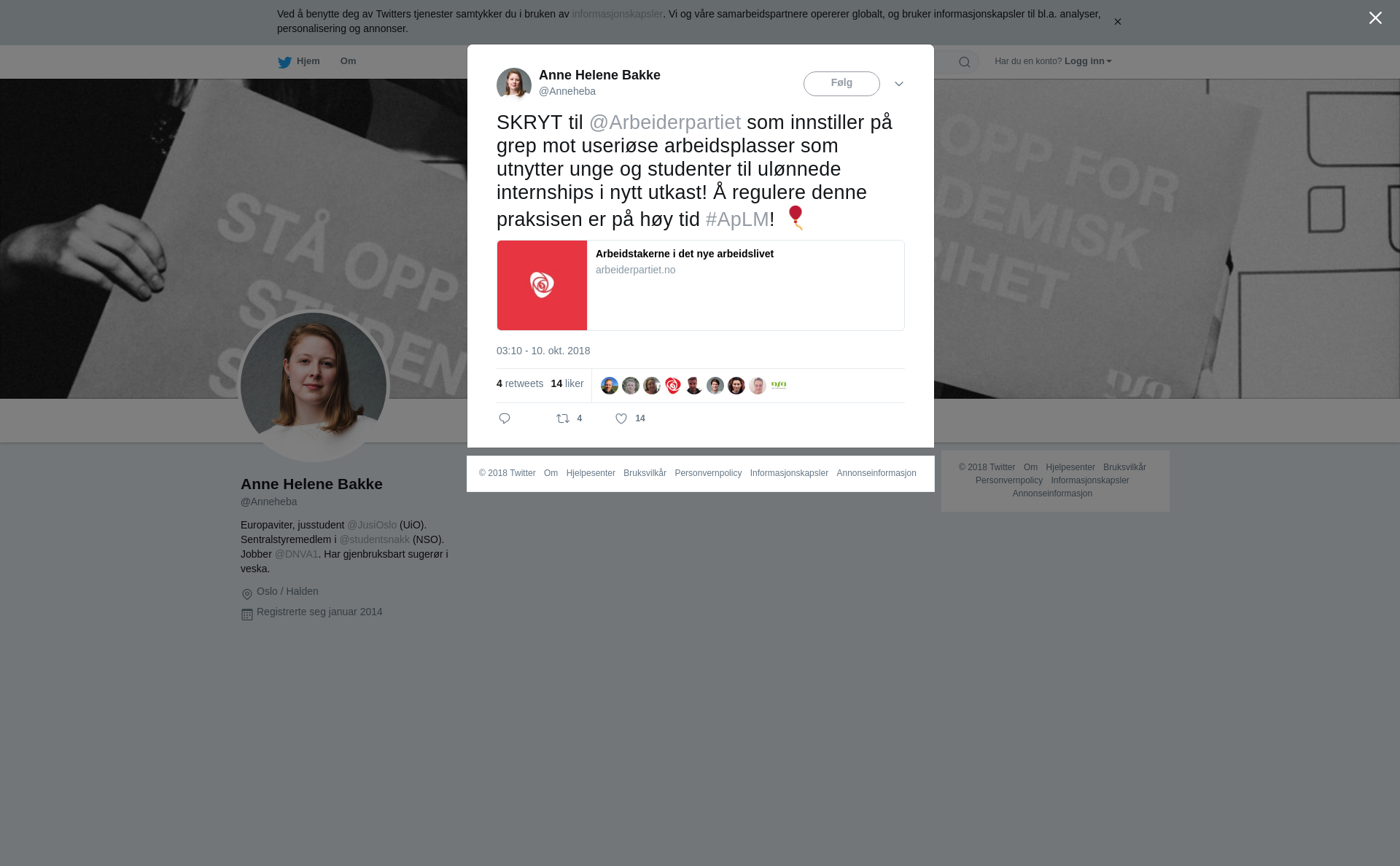 RT @Anneheba: SKRYT til @Arbeiderpartiet som innstiller på grep mot useriøse arbeidsplasser som utnytter unge og studenter til ulønnede internships i nytt utkast! Å regulere denne praksisen er på høy tid #ApLM! 🎈