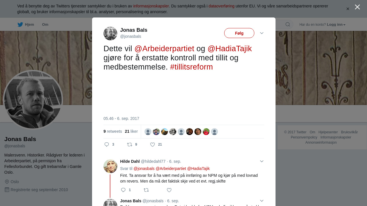 RT @jonasbals: Dette vil @Arbeiderpartiet og @HadiaTajik gjøre for å erstatte kontroll med tillit og medbestemmelse. #tillitsreform https://t.co/snKsmXtwrI