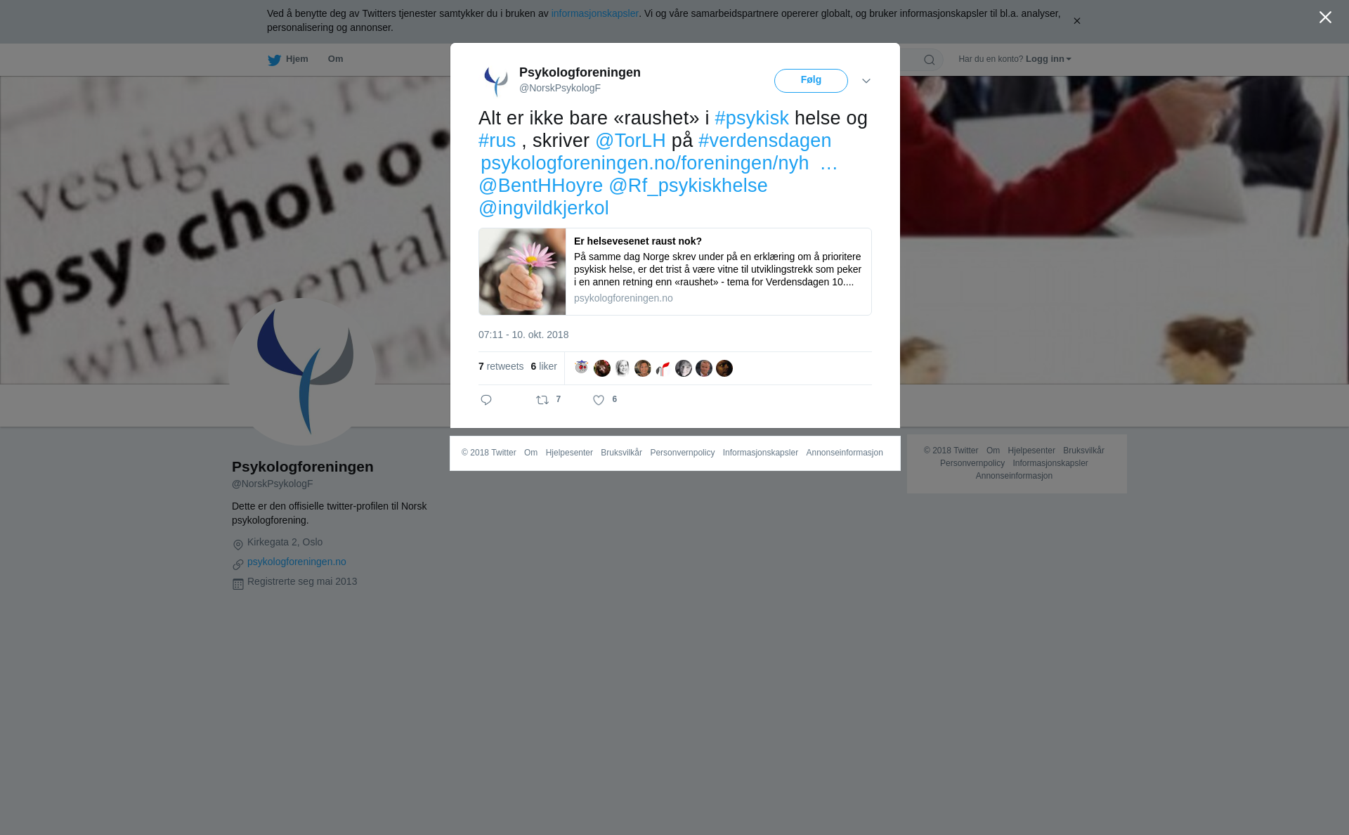 RT @NorskPsykologF: Alt er ikke bare «raushet» i #psykisk helse og #rus , skriver @TorLH på #verdensdagen https://t.co/z9MOjHVchb @BentHHoy…
