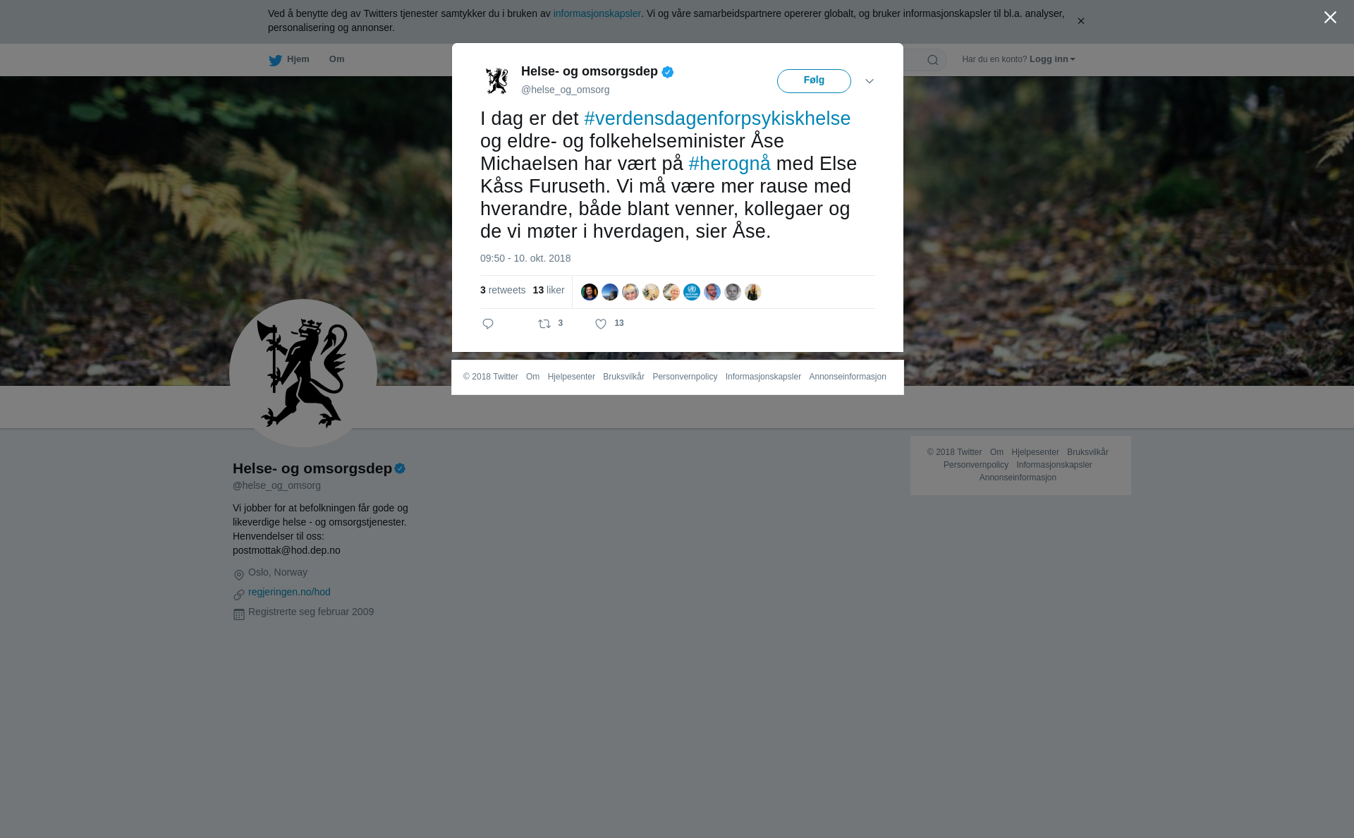 I dag er det #verdensdagenforpsykiskhelse og eldre- og folkehelseminister Åse Michaelsen har vært på #herognå med Else Kåss Furuseth. Vi må være mer rause med hverandre, både blant venner, kollegaer og de vi møter i hverdagen, sier Åse.