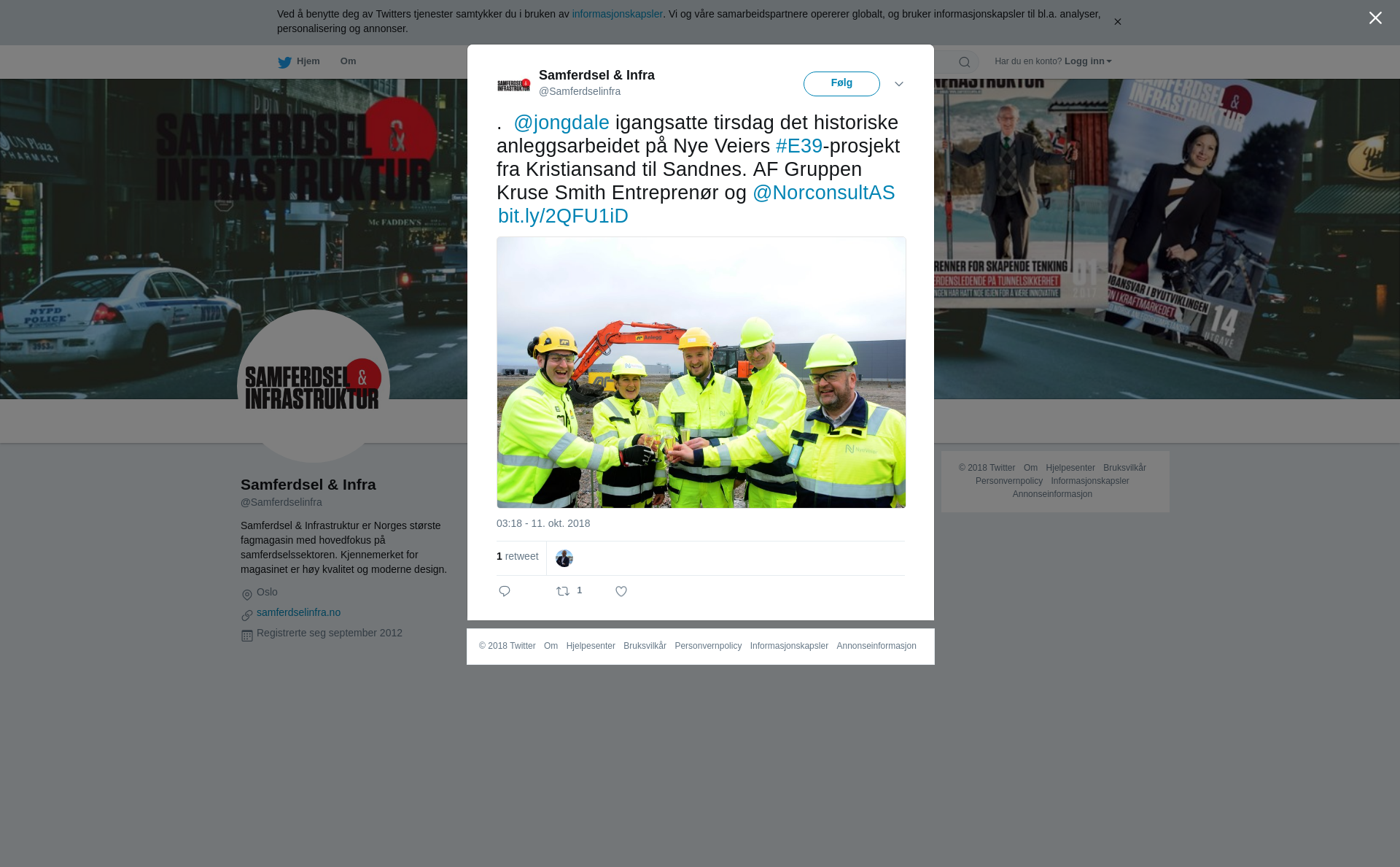 RT @Samferdselinfra: . @jongdale igangsatte tirsdag det historiske anleggsarbeidet på Nye Veiers #E39-prosjekt fra Kristiansand til Sandnes. AF Gruppen Kruse Smith Entreprenør og @NorconsultAS https://t.co/1VxiCRwhSa https://t.co/G9oVpW7irD