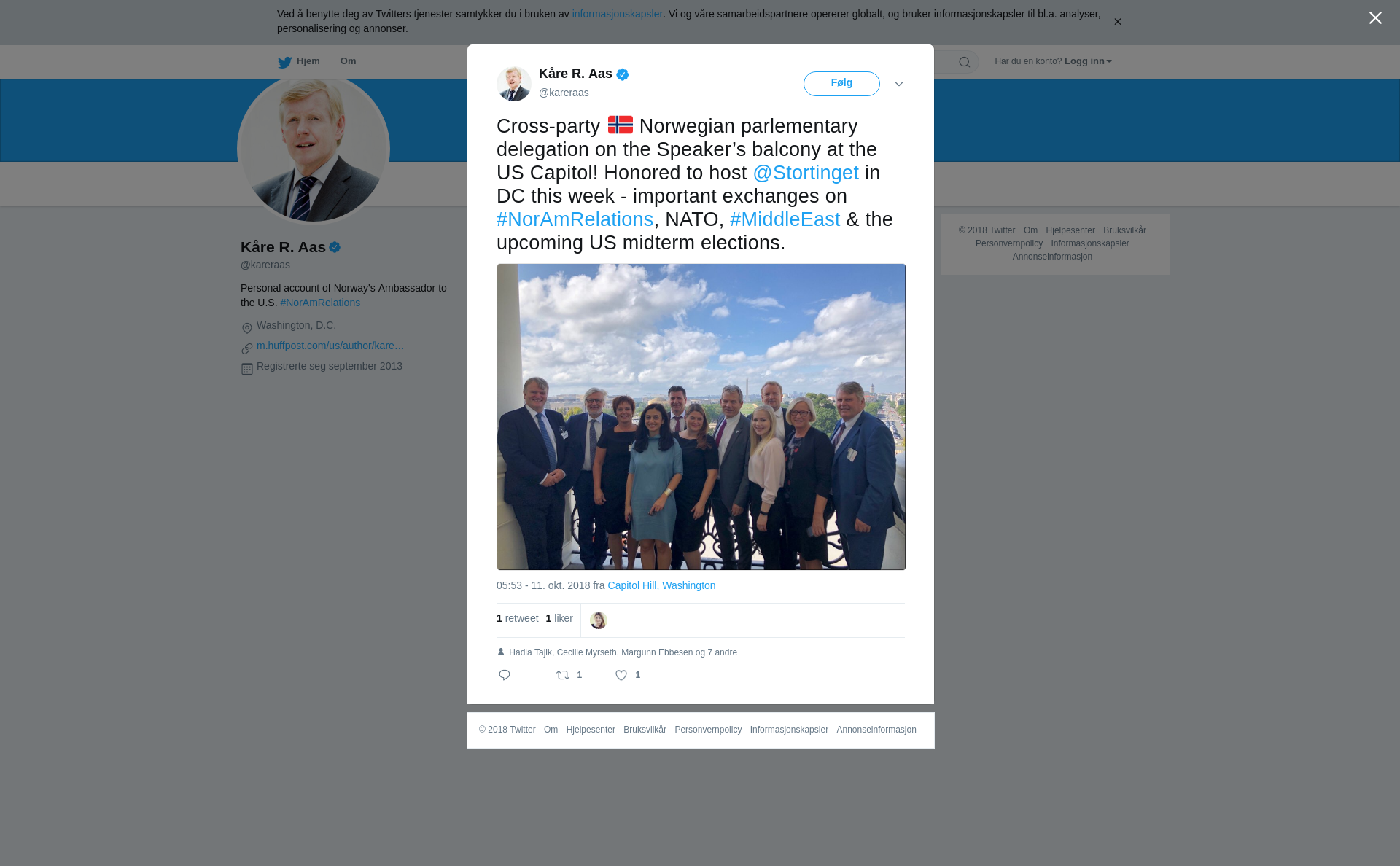 RT @kareraas: Cross-party 🇳🇴 Norwegian parlementary delegation on the Speaker’s balcony at the US Capitol! Honored to host @Stortinget in DC this week - important exchanges on #NorAmRelations, NATO, #MiddleEast & the upcoming US midterm elections. https://t.co/lcFT4hmowc