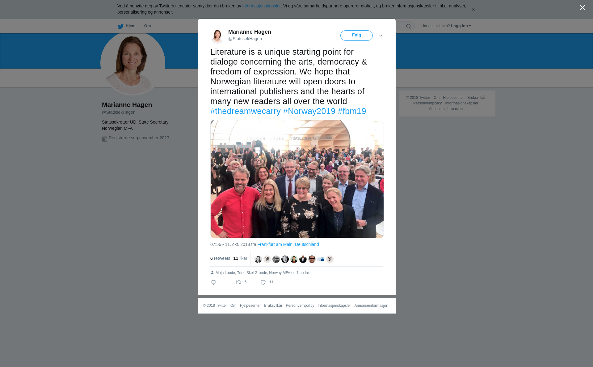 RT @StatssekHagen: Literature is a unique starting point for dialoge concerning the arts, democracy & freedom of expression. We hope that Norwegian literature will open doors to international publishers and the hearts of many new readers all over the world #thedreamwecarry #Norway2019 #fbm19 https://t.co/BX0jb8tXwm