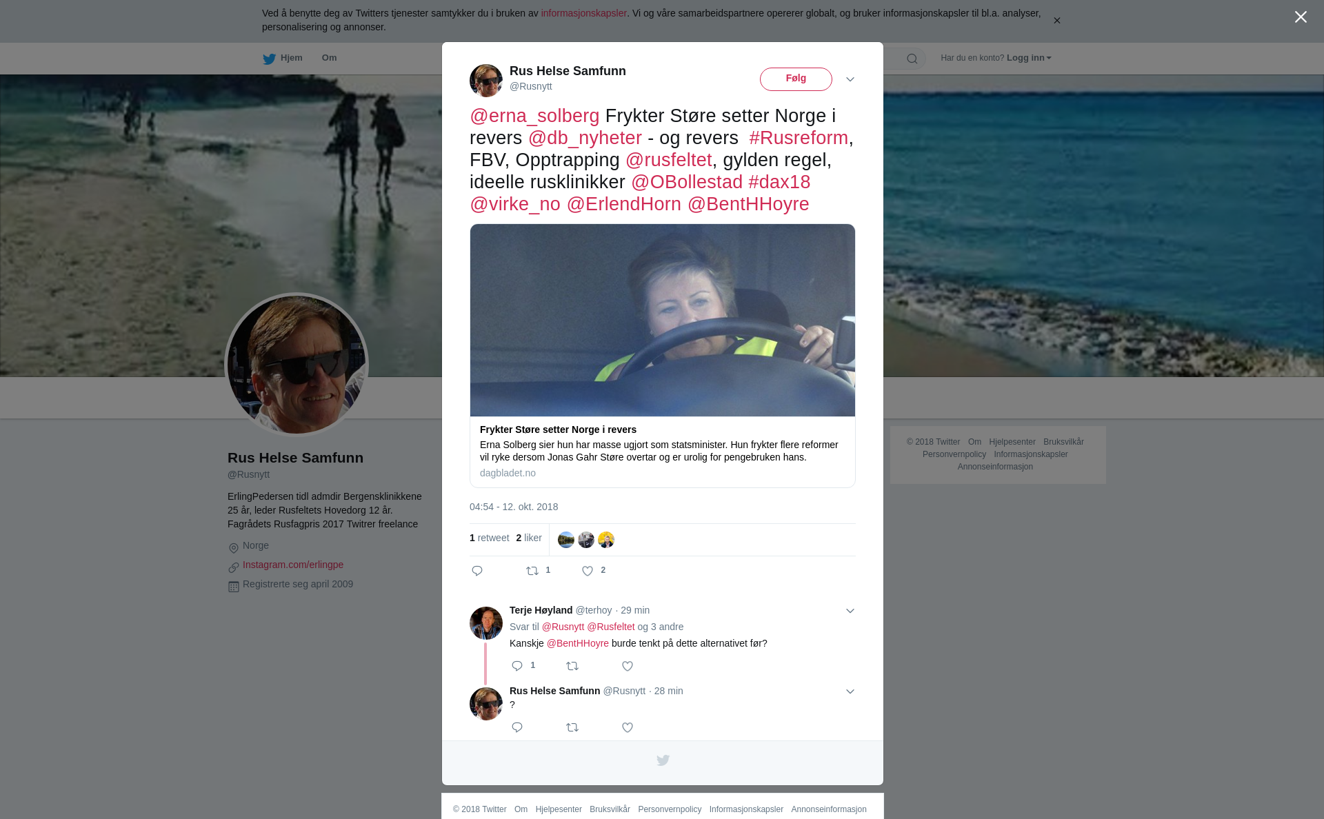 RT @Rusnytt: @erna_solberg Frykter Støre setter Norge i revers @db_nyheter - og revers #Rusreform, FBV, Opptrapping @rusfeltet, gylden regel, ideelle rusklinikker @OBollestad #dax18 @virke_no @ErlendHorn @BentHHoyre https://t.co/AxVKMlnBHU