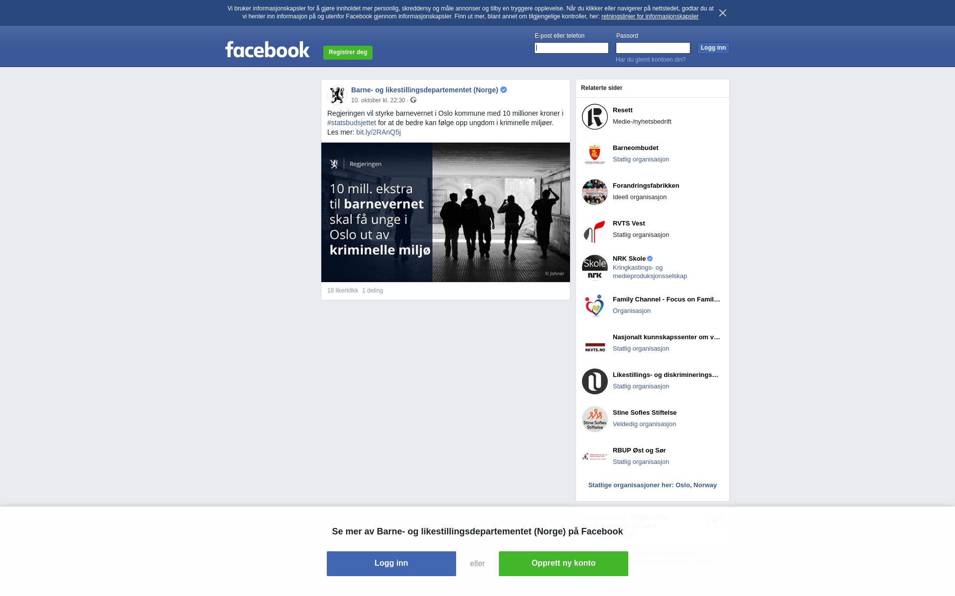 Regjeringen vil styrke barnevernet i Oslo kommune med 10 millioner kroner i #statsbudsjettet for at de bedre kan følge opp ungdom i kriminelle miljøer. Les mer: bit.ly/2RAnQ5j