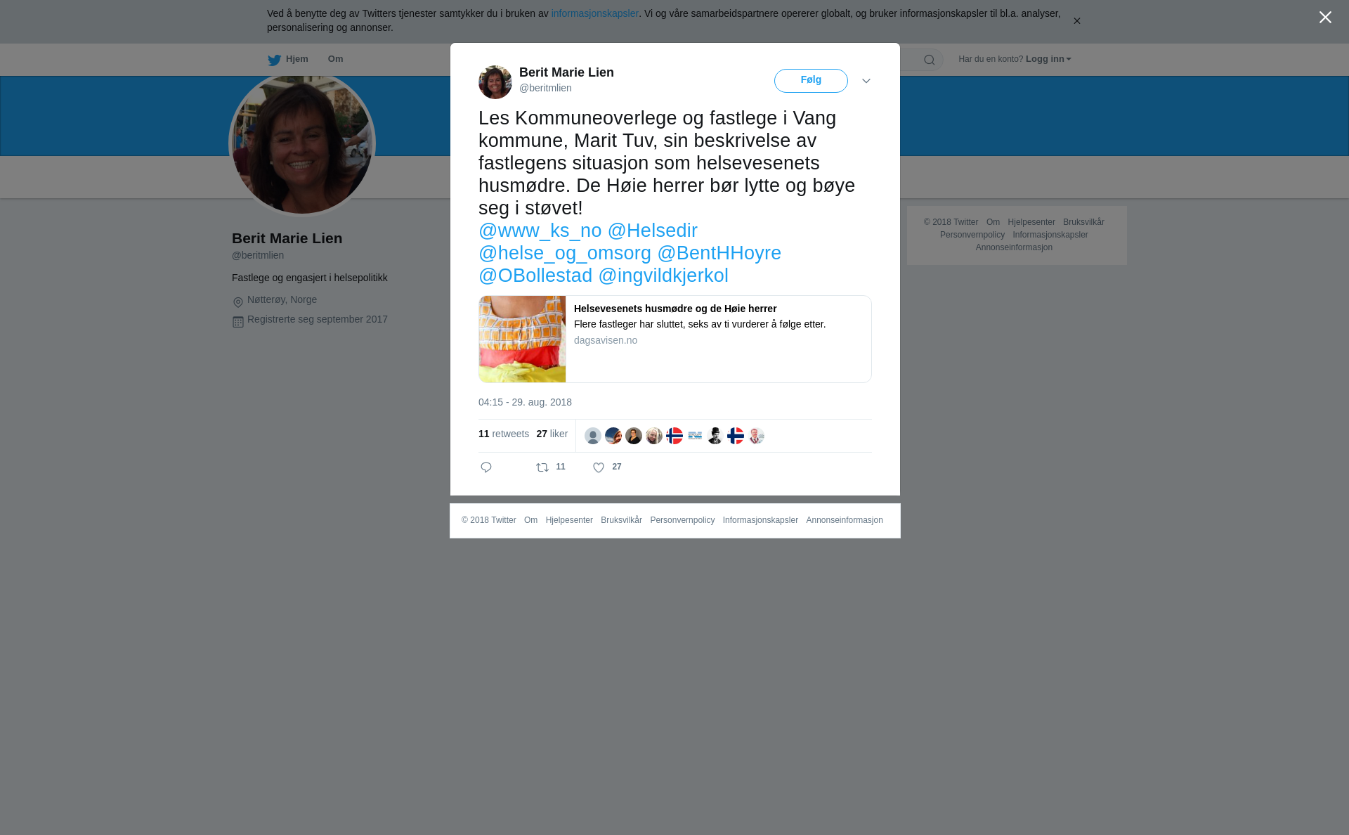 RT @beritmlien: Les Kommuneoverlege og fastlege i Vang kommune, Marit Tuv, sin beskrivelse av fastlegens situasjon som helsevesenets husmødre. De Høie herrer bør lytte og bøye seg i støvet!
