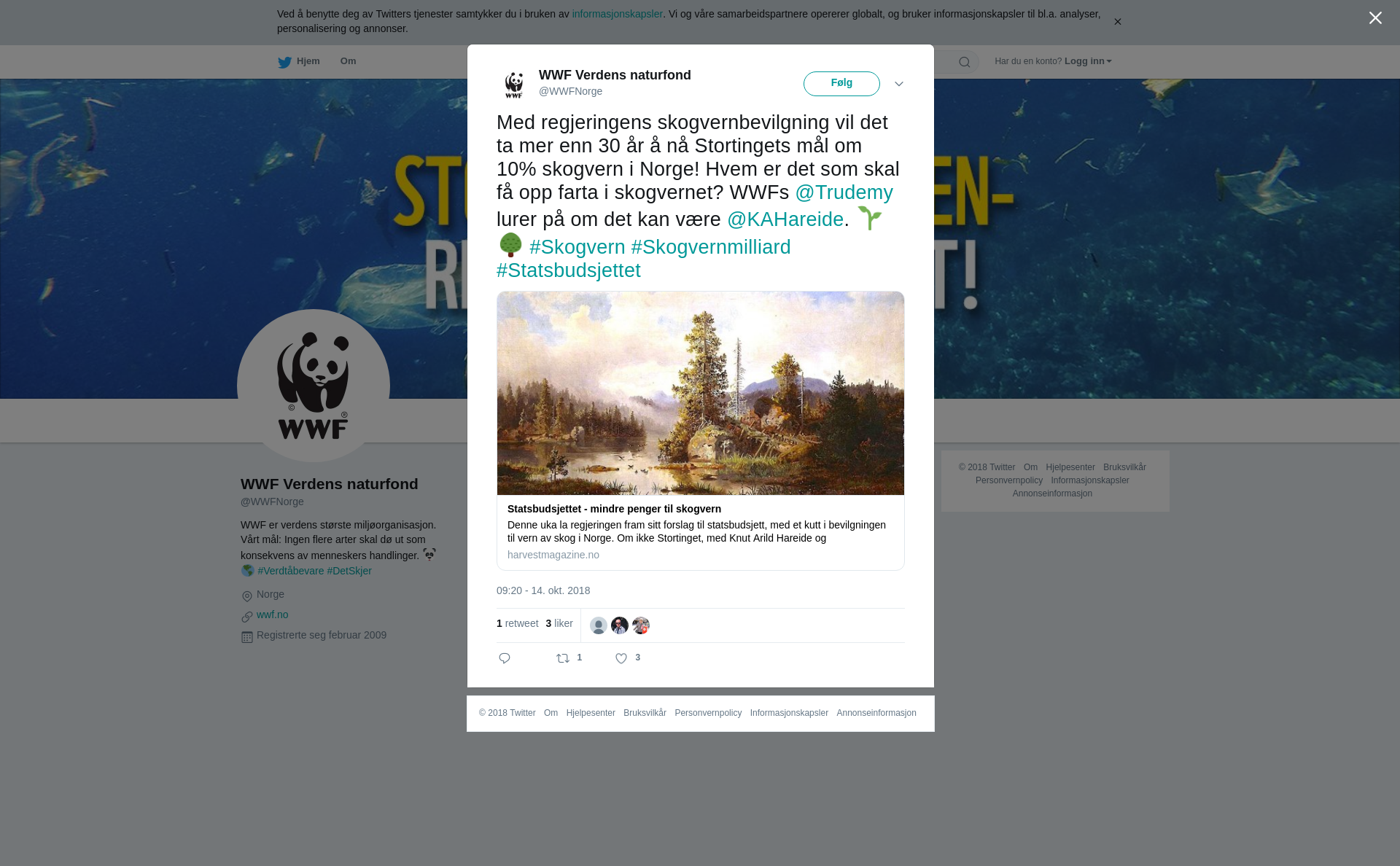 RT @WWFNorge: Med regjeringens skogvernbevilgning vil det ta mer enn 30 år å nå Stortingets mål om 10% skogvern i Norge! Hvem er det som skal få opp farta i skogvernet? WWFs @Trudemy lurer på om det kan være @KAHareide. 🌱🌳 #Skogvern #Skogvernmilliard #Statsbudsjettet https://t.co/e3sXEUyjI3