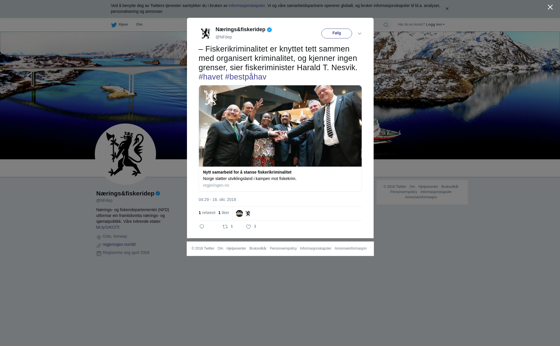 – Fiskerikriminalitet er knyttet tett sammen med organisert kriminalitet, og kjenner ingen grenser, sier fiskeriminister Harald T. Nesvik. #havet #bestpåhav https://t.co/Z7KYdDOE3L