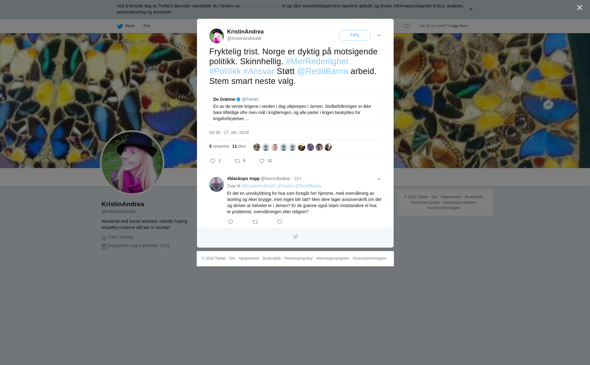 RT @KristinAndreaW: Fryktelig trist. Norge er dyktig på motsigende politikk. Skinnhellig. #MerRederlighet #Politikk #Ansvar Støtt @ReddBarna arbeid. Stem smart neste valg. https://t.co/C8lkl70b2X
