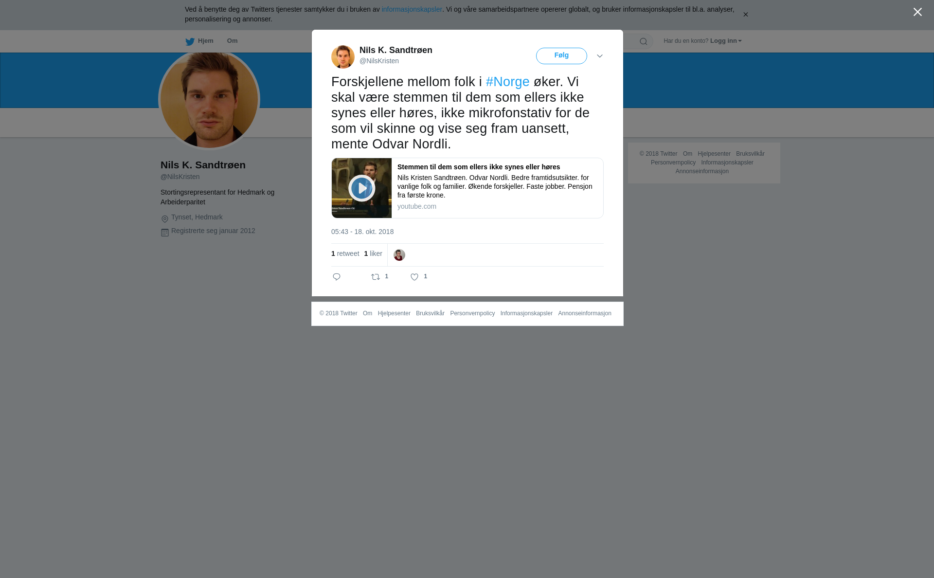 Forskjellene mellom folk i #Norge øker. Vi skal være stemmen til dem som ellers ikke synes eller høres, ikke mikrofonstativ for de som vil skinne og vise seg fram uansett, mente Odvar Nordli.