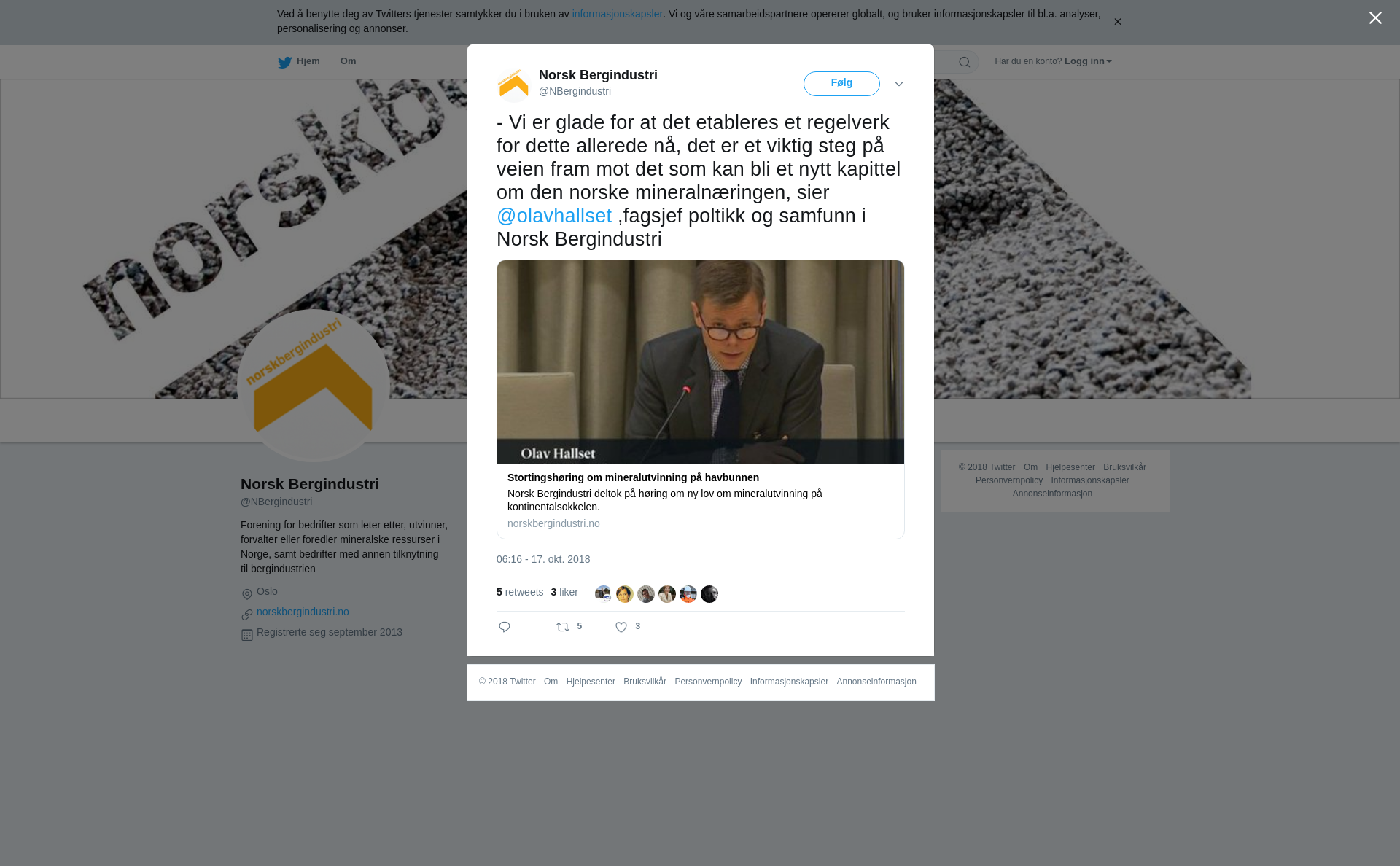 RT @NBergindustri: - Vi er glade for at det etableres et regelverk for dette allerede nå, det er et viktig steg på veien fram mot det som kan bli et nytt kapittel om den norske mineralnæringen, sier @olavhallset ,fagsjef poltikk og samfunn i Norsk Bergindustri
