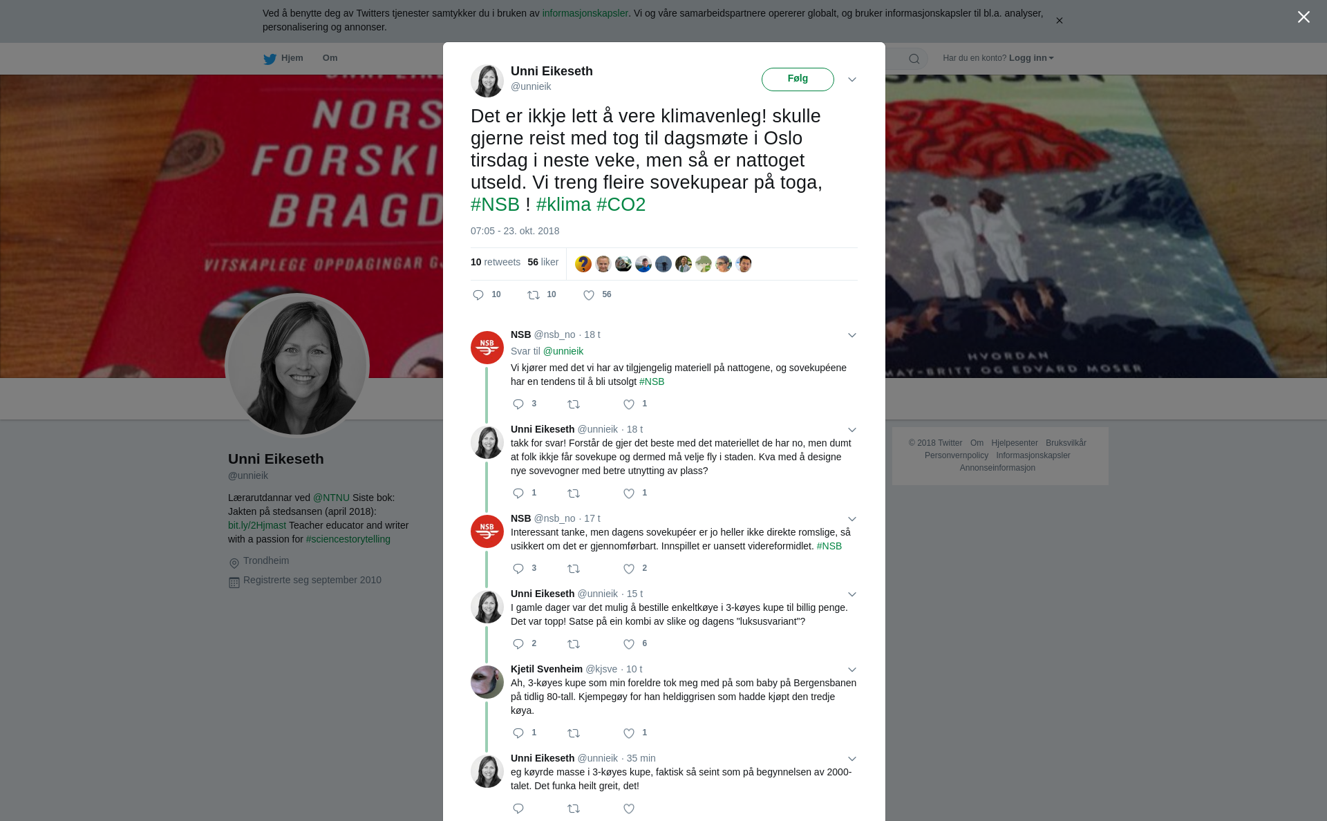 RT @unnieik: Det er ikkje lett å vere klimavenleg! skulle gjerne reist med tog til dagsmøte i Oslo tirsdag i neste veke, men så er nattoget utseld. Vi treng fleire sovekupear på toga,  #NSB ! #klima #CO2