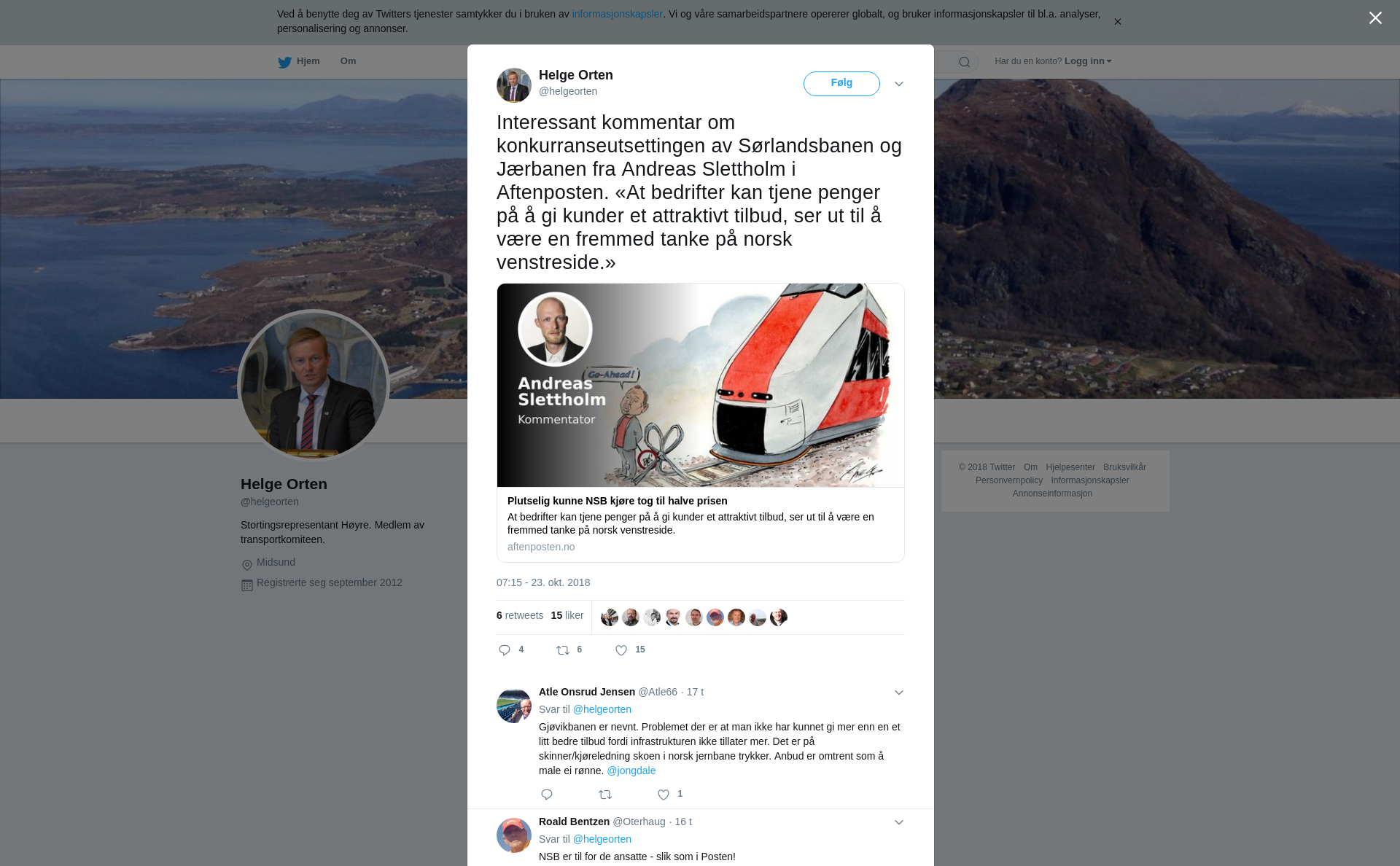 Interessant kommentar om konkurranseutsettingen av Sørlandsbanen og Jærbanen fra Andreas Slettholm i Aftenposten. «At bedrifter kan tjene penger på å gi kunder et attraktivt tilbud, ser ut til å være en fremmed tanke på norsk venstreside.» https://t.co/aYoOq5vNMv