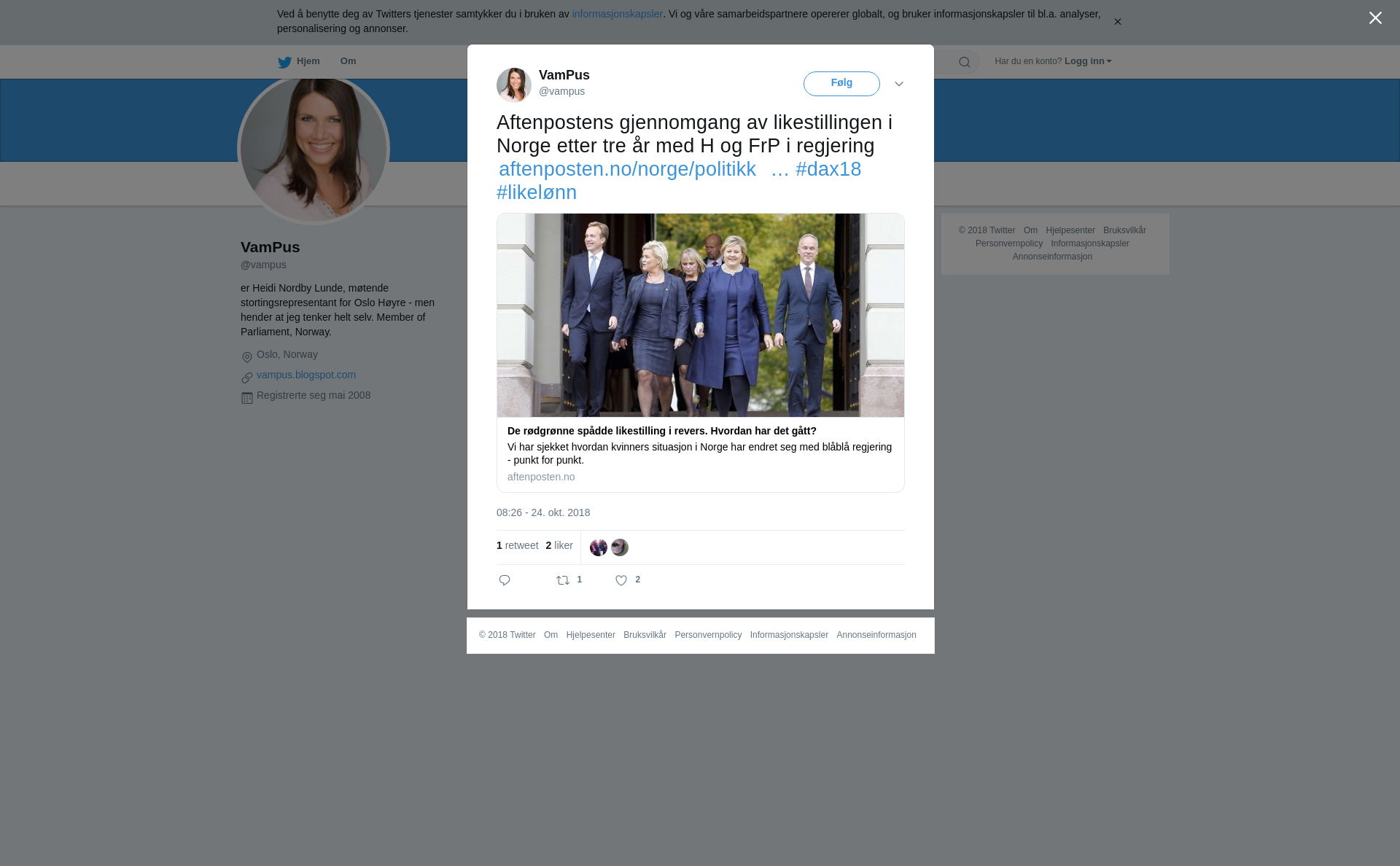 Aftenpostens gjennomgang av likestillingen i Norge etter tre år med H og FrP i regjering https://t.co/1Spxc2EjGQ #dax18 #likelønn