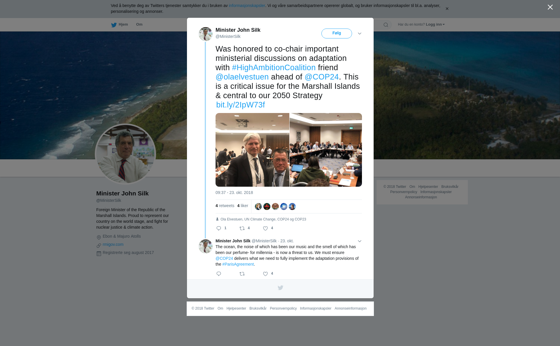 RT @MinisterSilk: Was honored to co-chair important ministerial discussions on adaptation with #HighAmbitionCoalition friend @olaelvestuen ahead of @COP24. This is a critical issue for the Marshall Islands & central to our 2050 Strategy https://t.co/Gz2M0lJOYp https://t.co/4XuT2VsO0Y
