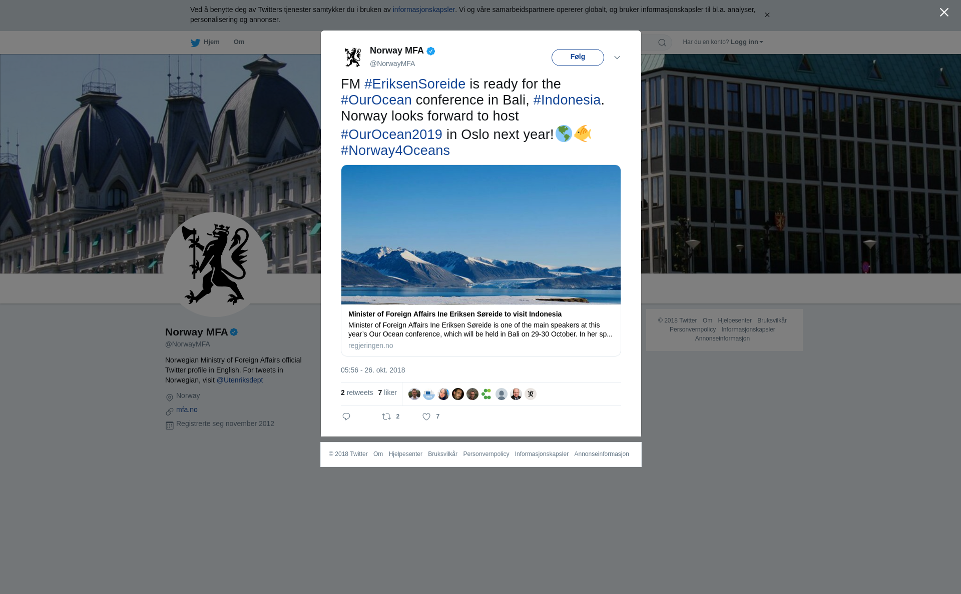 Minister of Foreign Affairs Ine Eriksen Søreide is one of the main speakers at this year’s Our Ocean conference, which will be held in Bali on 29-30 October. In her speech, she will formally launch Norway as host for Our Ocean in Oslo in 2019. Prior to...