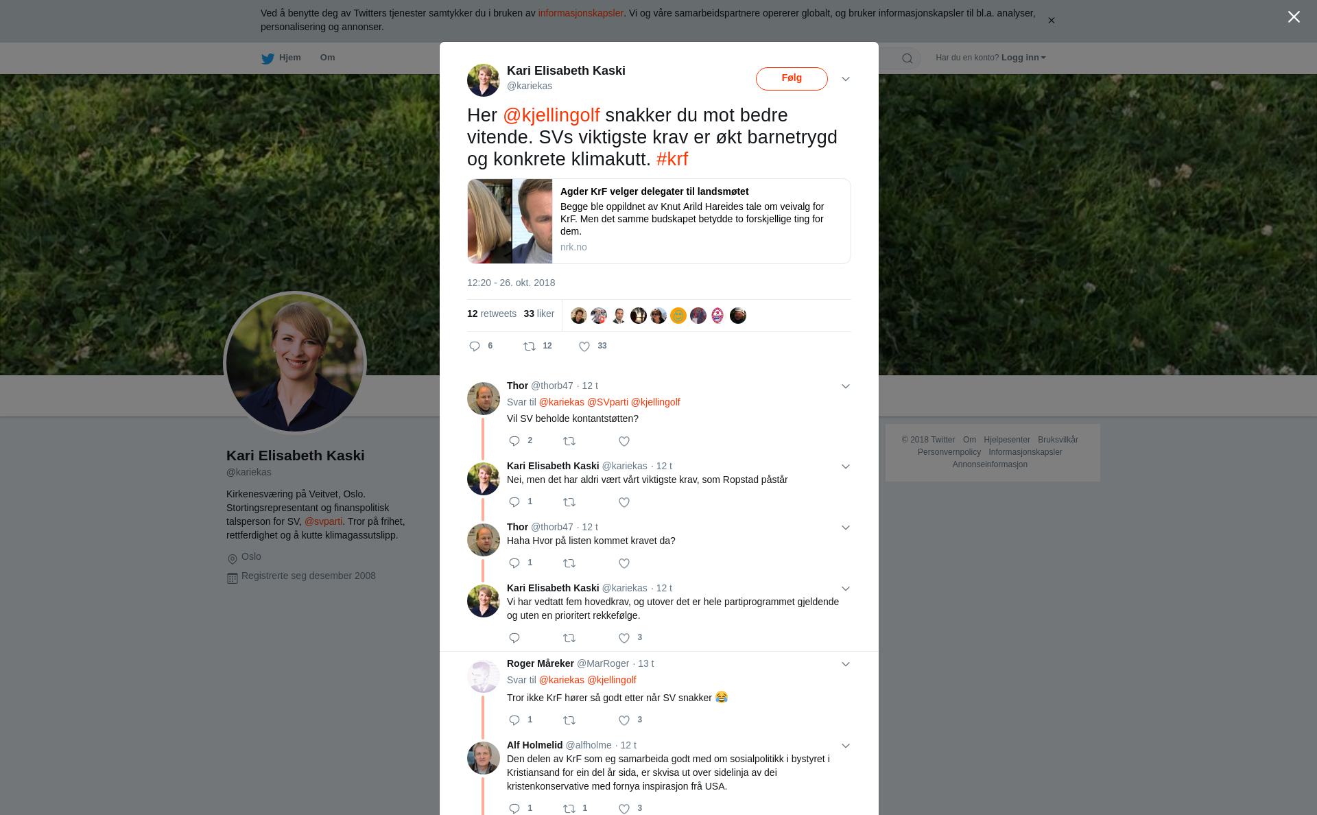 RT @kariekas: Her @kjellingolf snakker du mot bedre vitende. SVs viktigste krav er økt barnetrygd og konkrete klimakutt. #krf https://t.co/J9HUZTud6L