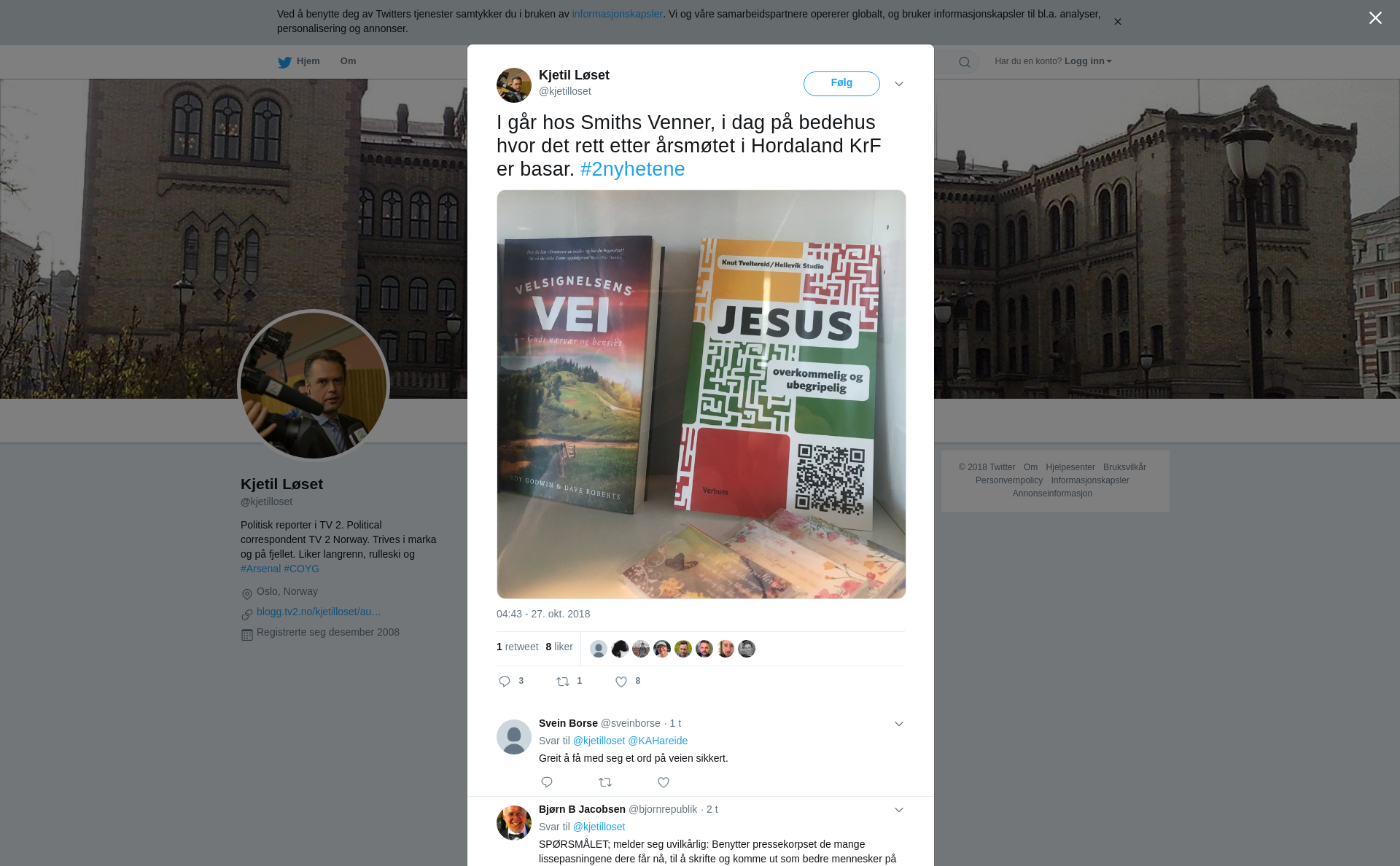 RT @kjetilloset: I går hos Smiths Venner, i dag på bedehus hvor det rett etter årsmøtet i Hordaland KrF er basar. #2nyhetene https://t.co/XsTFNnFknR