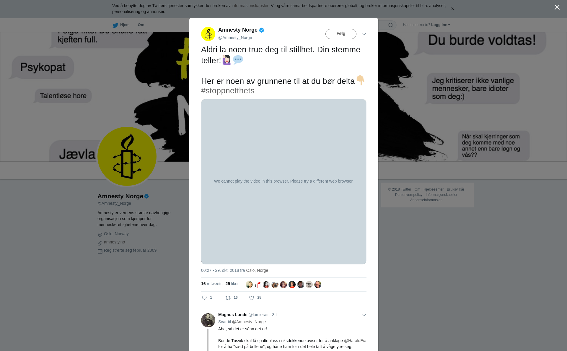 RT @Amnesty_Norge: Aldri la noen true deg til stillhet. Din stemme teller!🙋🏻💬 Her er noen av grunnene til at du bør delta👇🏼 #stoppnetthets…