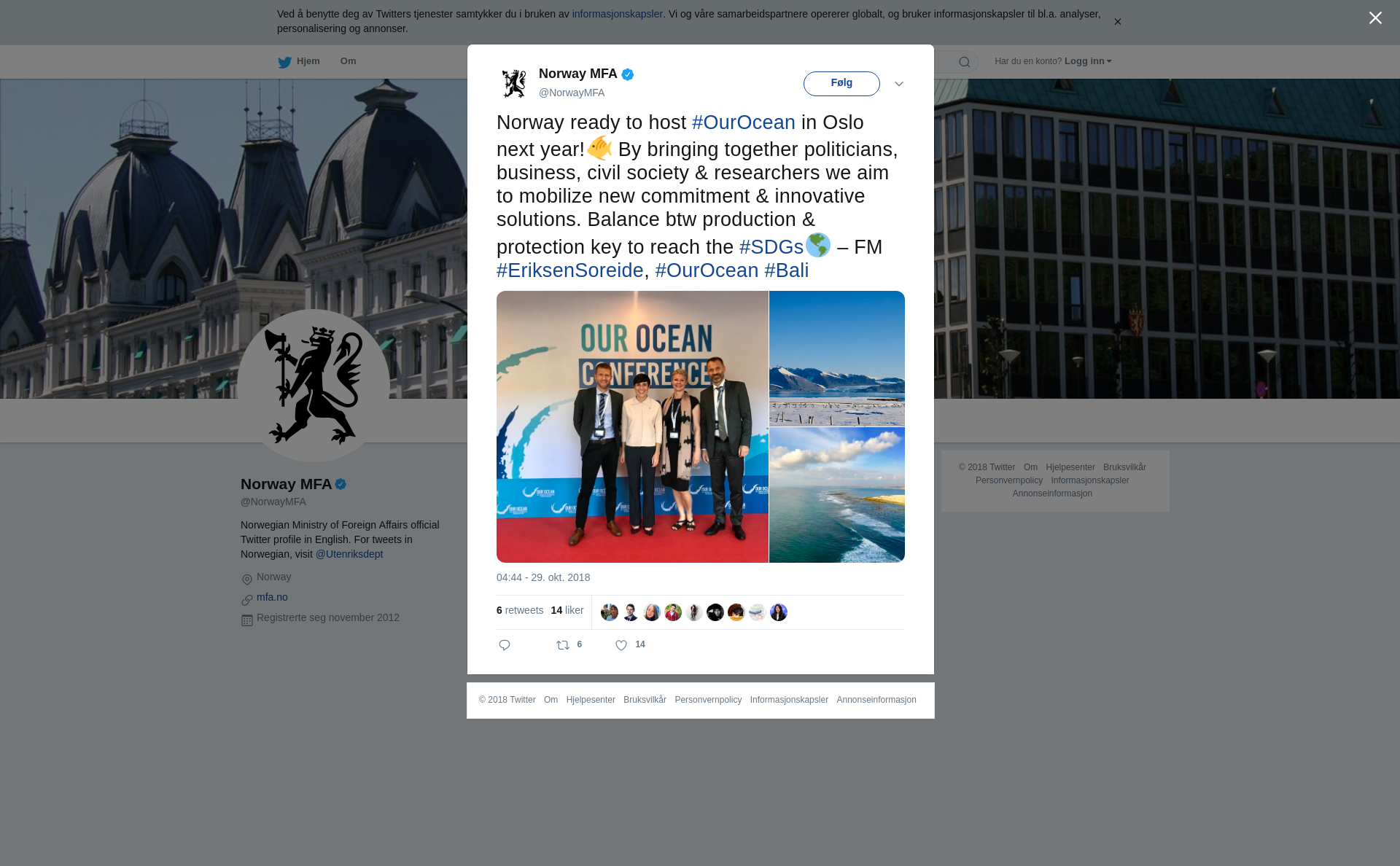 Norway ready to host #OurOcean in Oslo next year!🐠 By bringing together politicians, business, civil society & researchers we aim to mobilize new commitment & innovative solutions. Balance btw production & protection key to reach the #SDGs🌎 – FM #EriksenSoreide, #OurOcean #Bali https://t.co/TqiPwJshZl