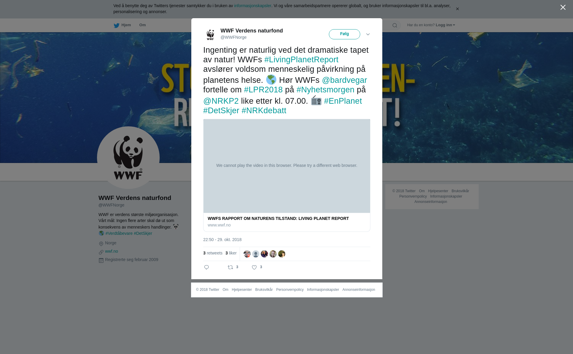 RT @WWFNorge: Ingenting er naturlig ved det dramatiske tapet av natur! WWFs #LivingPlanetReport avslører voldsom menneskelig påvirkning på planetens helse. 🌎 Hør WWFs @bardvegar fortelle om #LPR2018 på #Nyhetsmorgen på @NRKP2 like etter kl. 07.00. 📻 #EnPlanet #DetSkjer #NRKdebatt